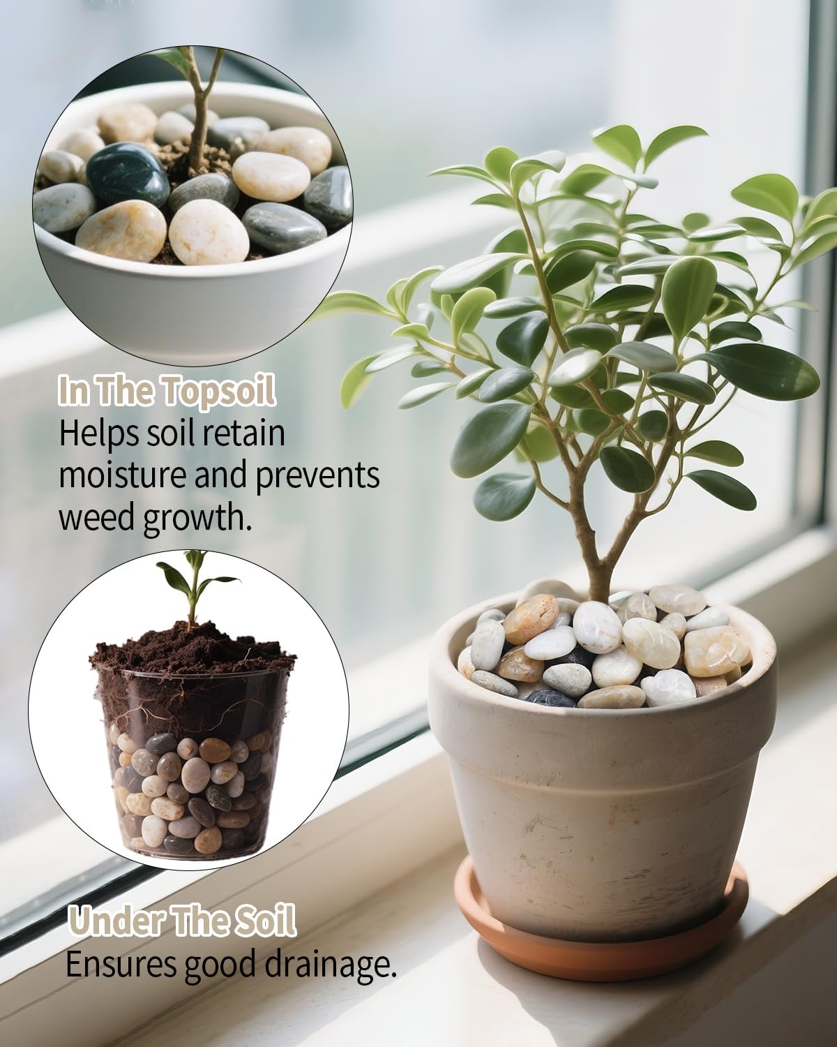 - Endless Decorating Possibilities:Versatile stones enhance indoor/outdoor spaces: use in potted plants, aquarium tanks, vase fillers, fairy gardens, or as mulch for flower beds, patios, and rain gardens. Elevate curb appeal or add organic texture to home decor