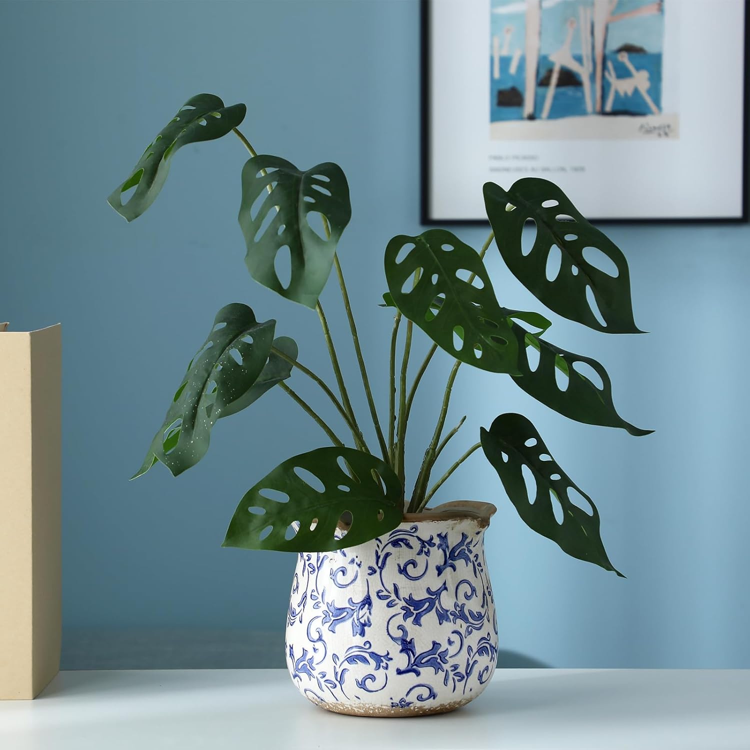 Newtay 6 Inch Ceramic Plants Pots Vintage Ceramic Flower Planters Crackle Glaze Finish Flower Pots Decorative Floral Vintage Planters for Living Room Garden Home Decor Gifts(Chinoiserie)