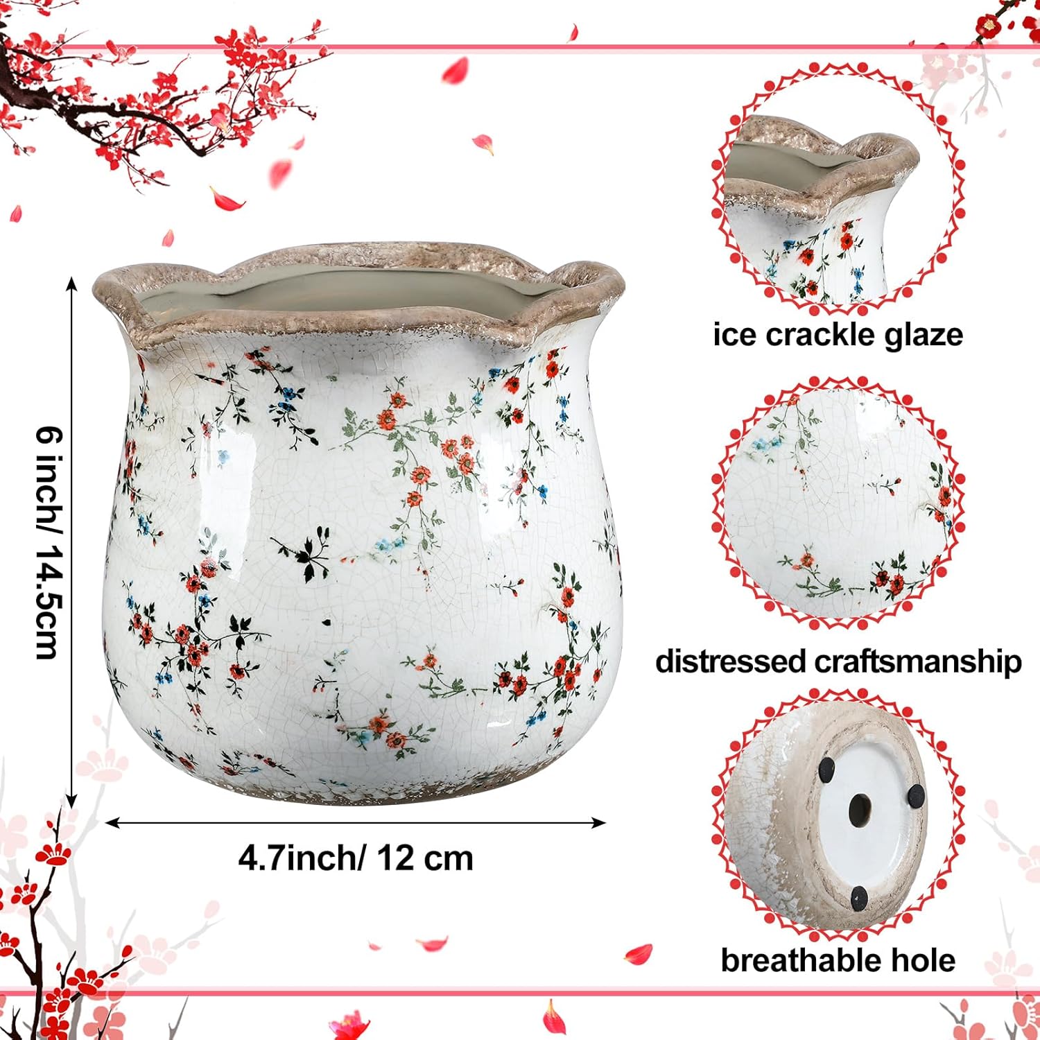 Newtay 6 Inch Ceramic Plants Pots Vintage Ceramic Flower Planters Crackle Glaze Finish Flower Pots Decorative Floral Vintage Planters for Living Room Garden Home Decor Gifts(Cute)