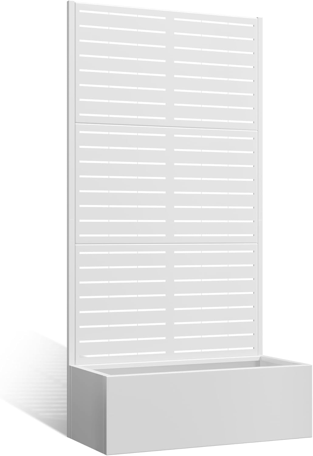 - đĄïžăOutdoor Privacy Screen & Metal Planter Box with TrellisăUse this metal planter box with trellis to create a natural divider on your patio, balcony, or yard. Itâs more than just a garden raised bed for climbing plantsâitâs also a beautiful metal planter with privacy screen that offers shade and separation. The sleek black frame and vertical lines of this metal planter box with trellis make it both decorative and practical.