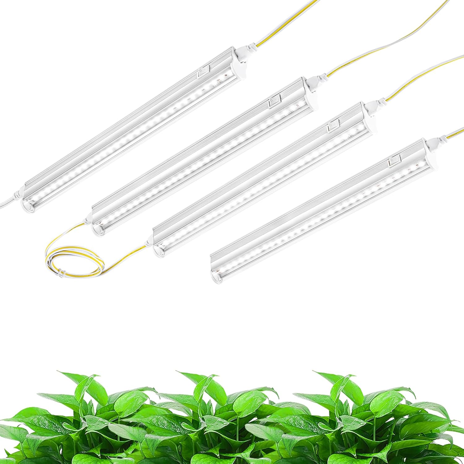Hywymlait Grow Lights for Indoor Plants, 5000K White Full Spectrum LED Growing Lamp, 1FT T5 Plant Growing Light Strips for Greenhouse Seed Starting, Vegetables, Plug and Use, 4-Pack
