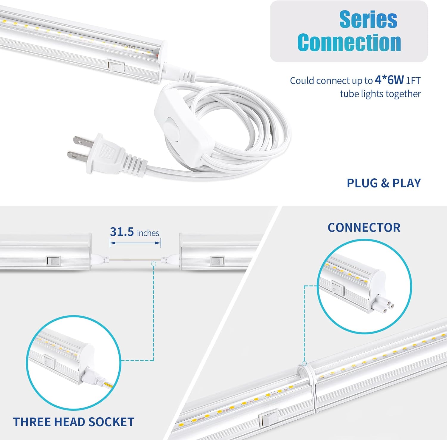 - What will you get: 4 x T5 grow lights, 1 x US ETL certified power cord with switch (59 inches), 3 x connecting wires (31.5 inches), 4 x accessory bags, 8 x hanging rings, 8 x screws, 9 x cable ties, 1 x Velcro cable tie (78 inches), 1 x instruction manual.
