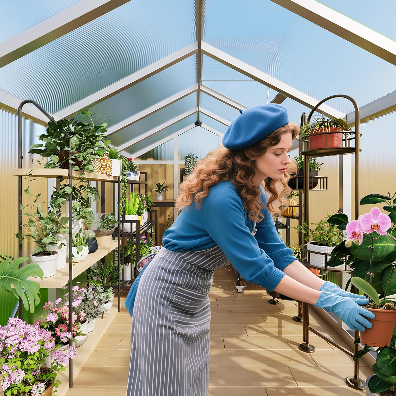 - 【Study Build】Crafted to handle various weather conditions, this greenhouse uses 720g/m² polycarbonate panels and a robust aluminum frame for enhanced durability. The strong structure offers reliable performance in heavy rain and strong wind, helping to maintain a safe environment for your plants in different seasons