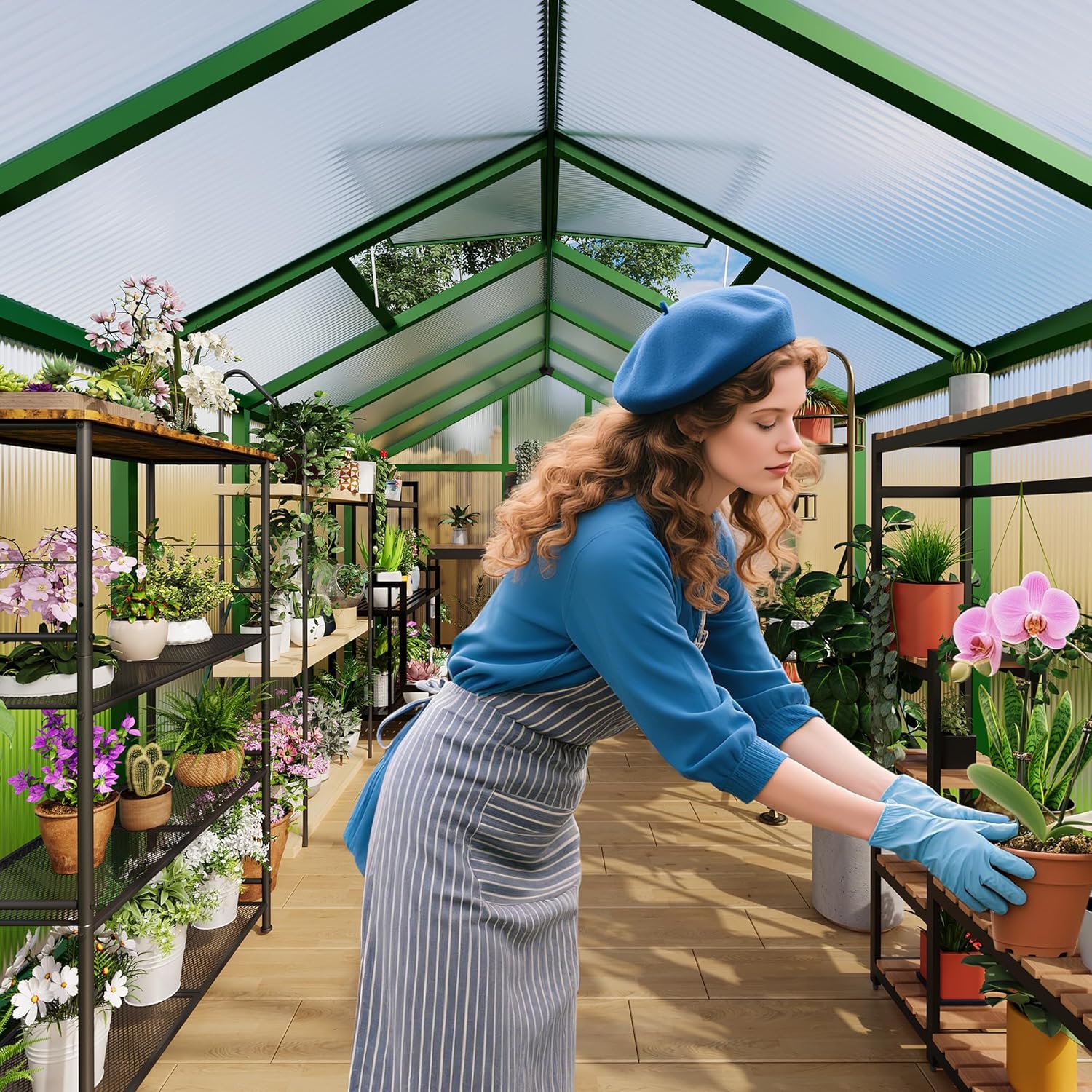 - 【Study Build】Crafted to handle various weather conditions, this greenhouse uses 720g/m² polycarbonate panels and a robust aluminum frame for enhanced durability. The strong structure offers reliable performance in heavy rain and strong wind, helping to maintain a safe environment for your plants in different seasons