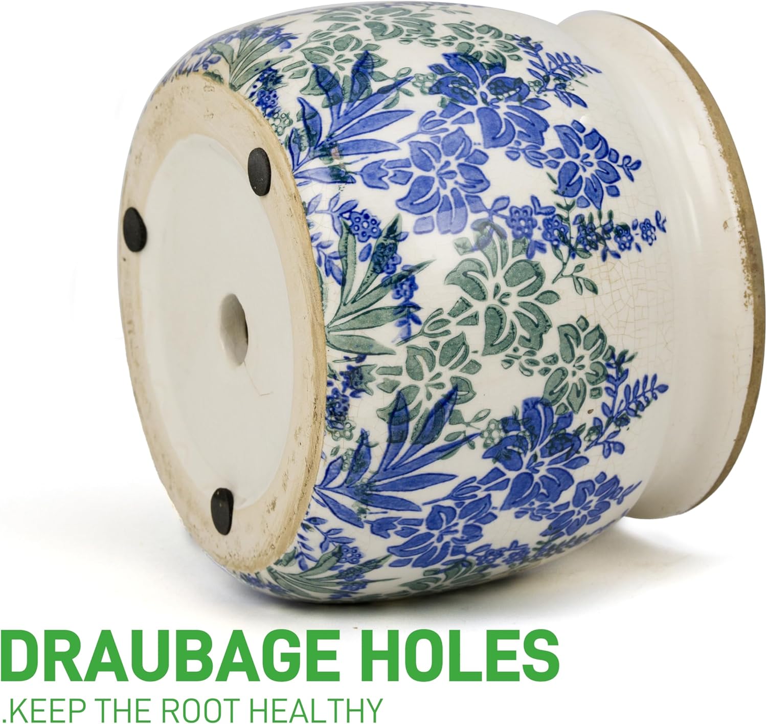 - 【Exquisite Vintage Design】 Our ceramic flower pots feature vintage ice crackle patterns and distressed craftsmanship, with exquisite floral designs that can perfectly complement any decor style. Our ceramic planters for indoor plants and outdoor plants is always eye-catching.