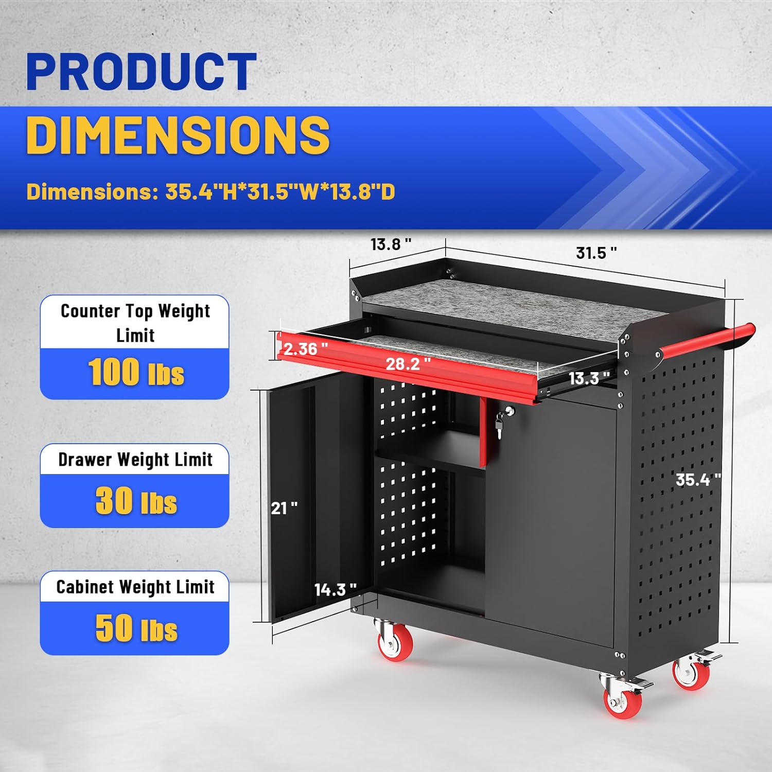 - Product Dimensions : 13.8"D x 31.5"W x 35.4"H