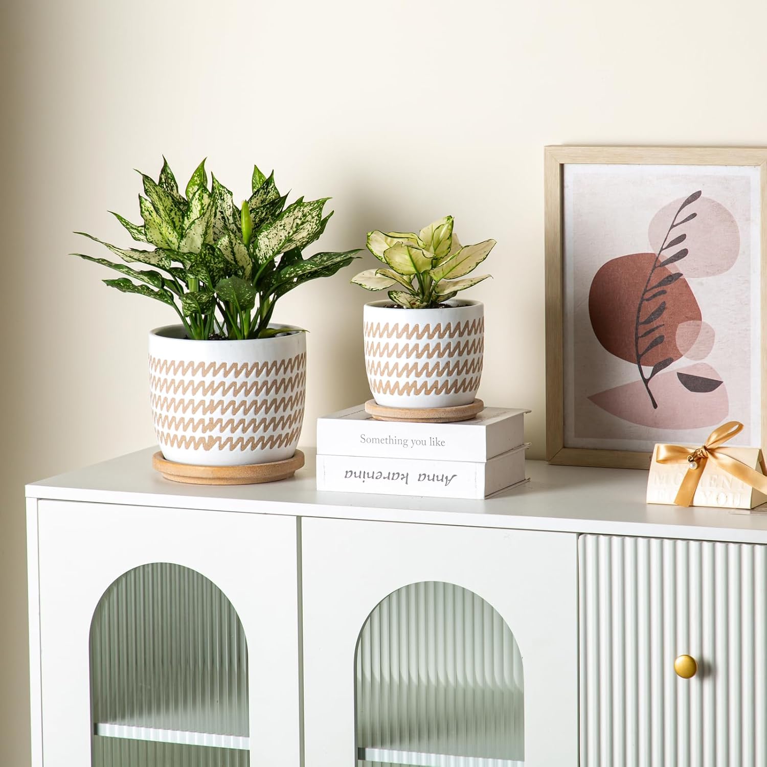 Ceramic Flower Pots Indoor-Outdoor: 7.75 Inch Large Planters with Drainage Holes & Saucer - Modern Decorative Plant Pots Ceramic for Home Gardeners (Wave)