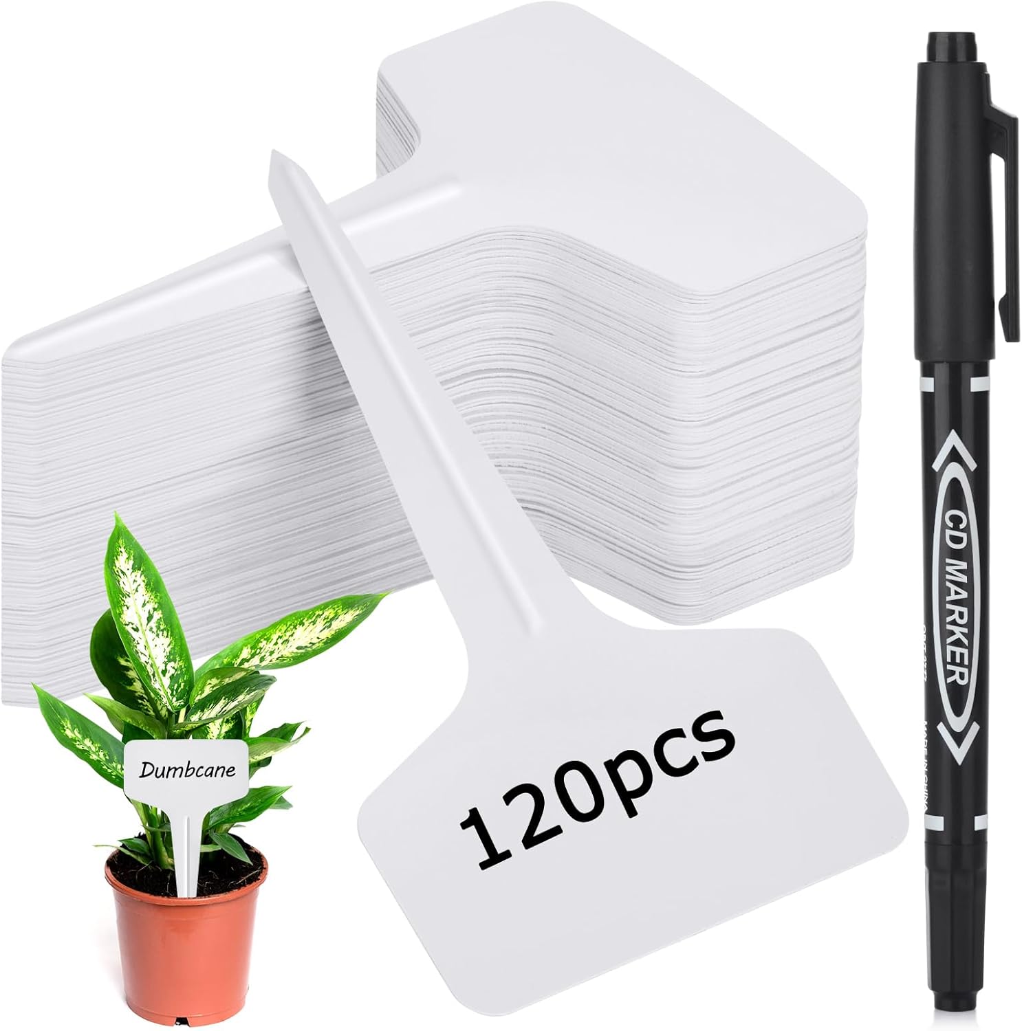 - 1.Value Set: Plant labels include T-Type 120pcs, enough plant markers to meet your different needs, and a free marker pen for you, which can help you to mark all kinds of plants, flowers, seeds and vegetables with garden markers.