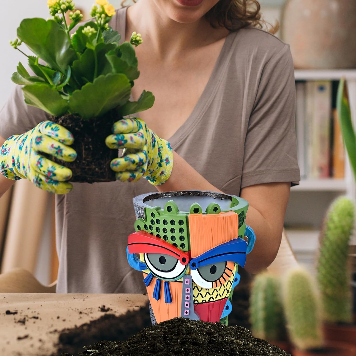 - 【Instant Whimsy for Home Decor】Elevate your space with undeniable whimsy and charm! This colorful face planter acts as a captivating piece of home art decoration, instantly enhancing the aesthetic of patios, gardens, bureaus, or fireplaces with its bright and elegant presence
