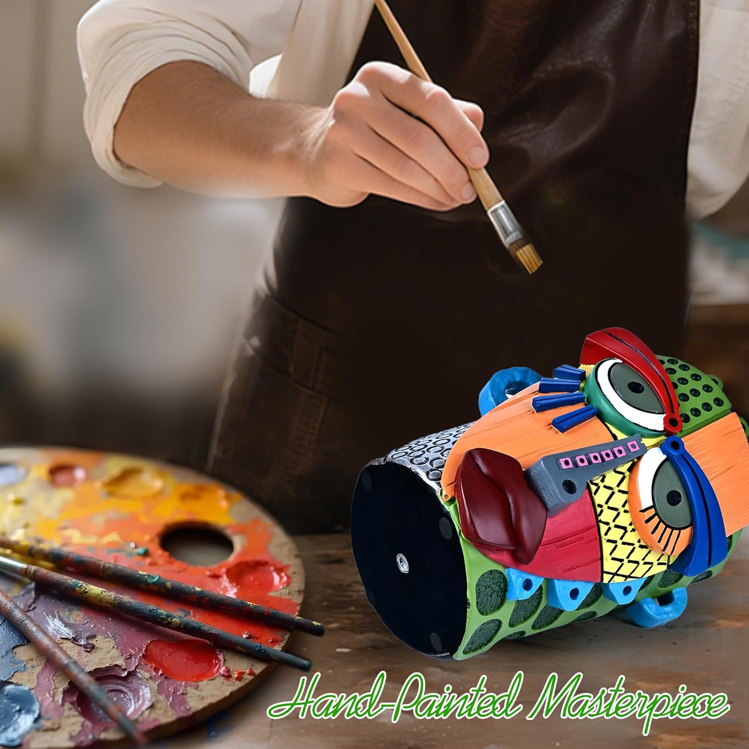 - 【Vibrant Hand-Painted Masterpiece】Bursting with bright and vibrant colorful hues, this meticulously hand-painted planter is a true riot of imagination. Its abstract visage creates a stunning, artful display for your plants, blending nature with modern artistry