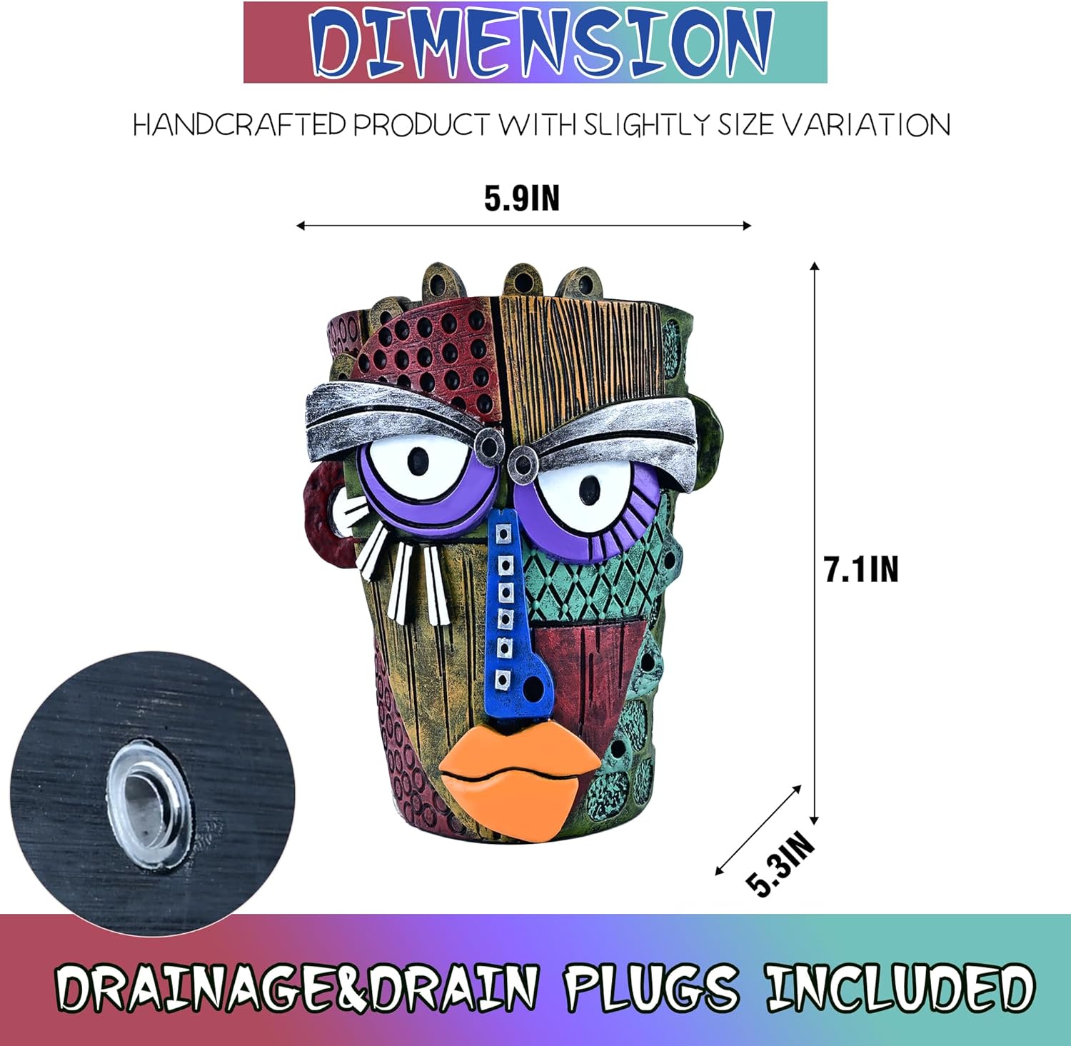 - 【Vibrant Hand-Painted Masterpiece】Bursting with bright and vibrant colorful hues, this meticulously hand-painted planter is a true riot of imagination. Its abstract visage creates a stunning, artful display for your plants, blending nature with modern artistry
