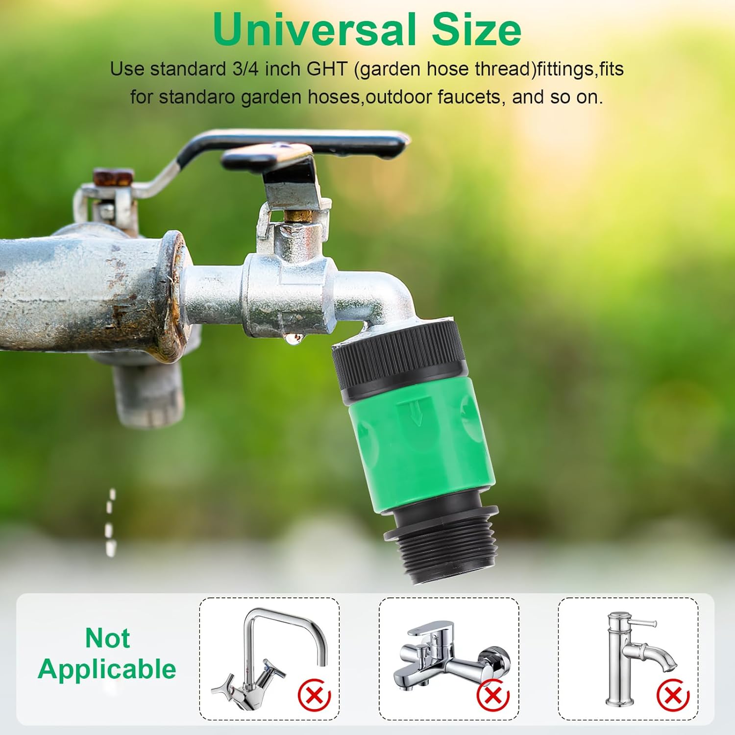 - Easy to use: 3/4-inch GHG male and female connectors are compatible with most types of connecting hoses, faucets, high-pressure washers, and irrigation equipment. The hose connectors are compatible with 3/4-inch GHG hose connectors and nozzles.