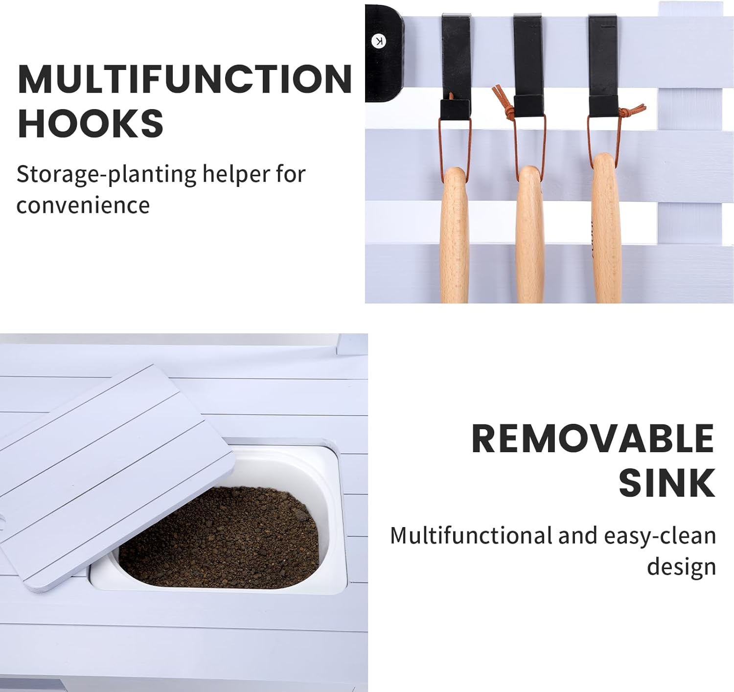 - ALL-WEATHER POTTING BENCH— Workbench covered with an eco-friendly safety coating, Weather proof, corrosion resistance, fade resistance, and crack resistance are the standout features of this flower pot workbench, ensuring a long service life. It is ideal for use in various outdoor weather conditions.