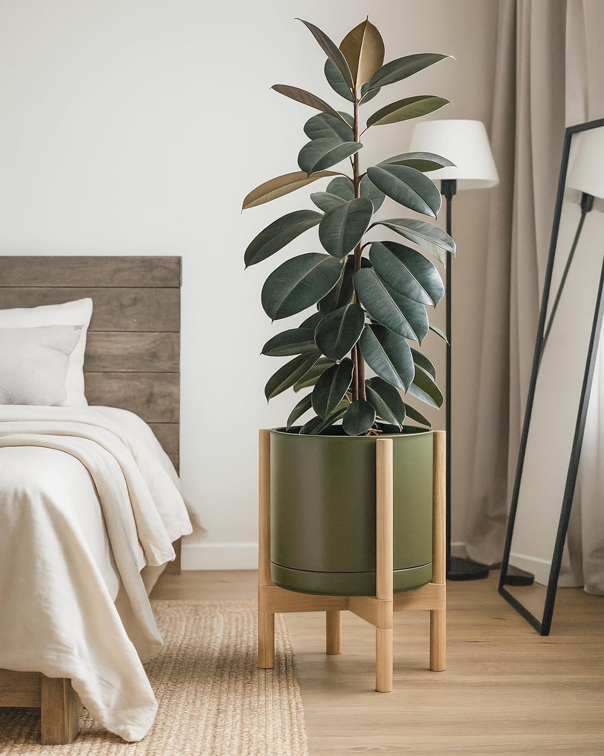 - A Complete Set: Mid-century ceramic planter, combined with a natural color, sculptural, solid wood stand that match perfectly together and looks great in anywhere.