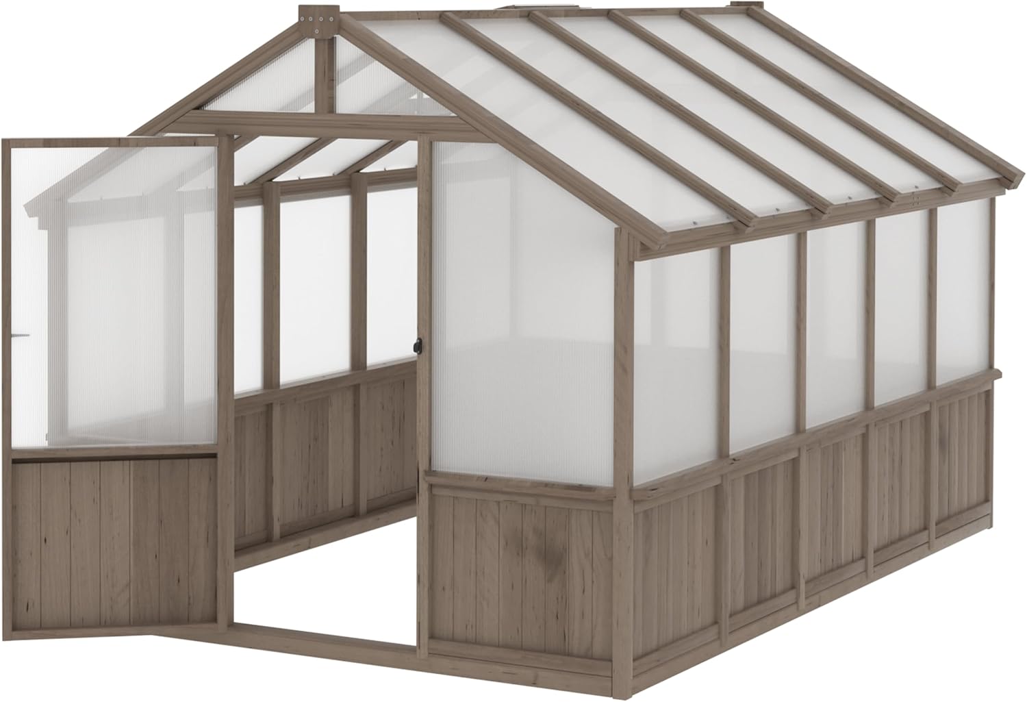 MUPATER 8 x 10FT Wooden Greenhouse with 6mm Polycarbonate Panels for UV Protection and Heat Insulation, Adjustable Ventilated Window & Lockable Door, Walk-in Greenhouse for Outdoors, Patio, Backyard