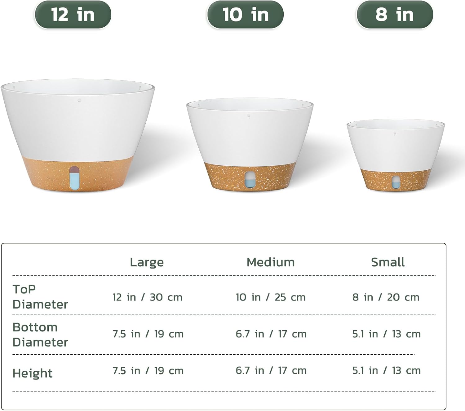 - 【Ventilation & Drainage】The easy-to-remove tray design simplifies cleaning and maintenance. The tray stores water for 7 days or more, and the mesh ventilation holes in the bottom of the self-watering pot ensure optimal aeration, providing plenty of breathing space for your plants