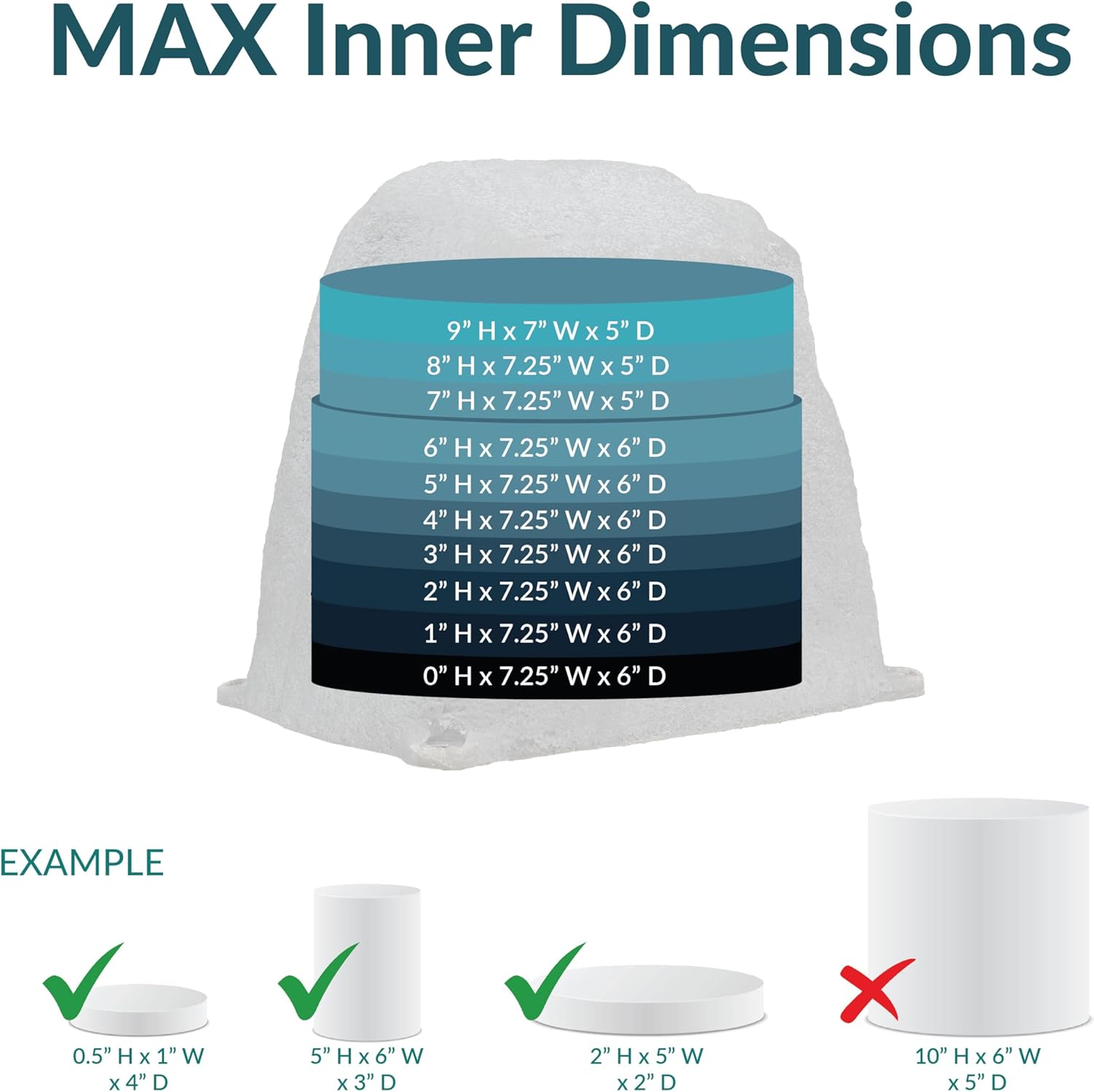 - CONCEAL EYESORES WITH EASE: Hide unattractive yard fixtures, wiring clusters, low-profile septic tank risers, sprinkler valves, and other outdoor utilities with this discreet faux landscape rock. It also doubles as a clever spot to stash a spare key. Each artificial boulder measures 12.5" W x 8.5" D x 11" H and weighs just 1.6 lbs. The rock includes 1" W x 12" H stakes for secure placement.