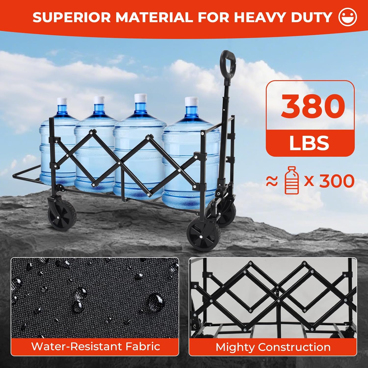 Collapsible Extended Tailgate Wagon with Wheels, 380LBS Capacity Folding Utility Cart for Garden,Outdoor, Grocery, Beach, Camping Portable Heavy Duty Garden Cart
