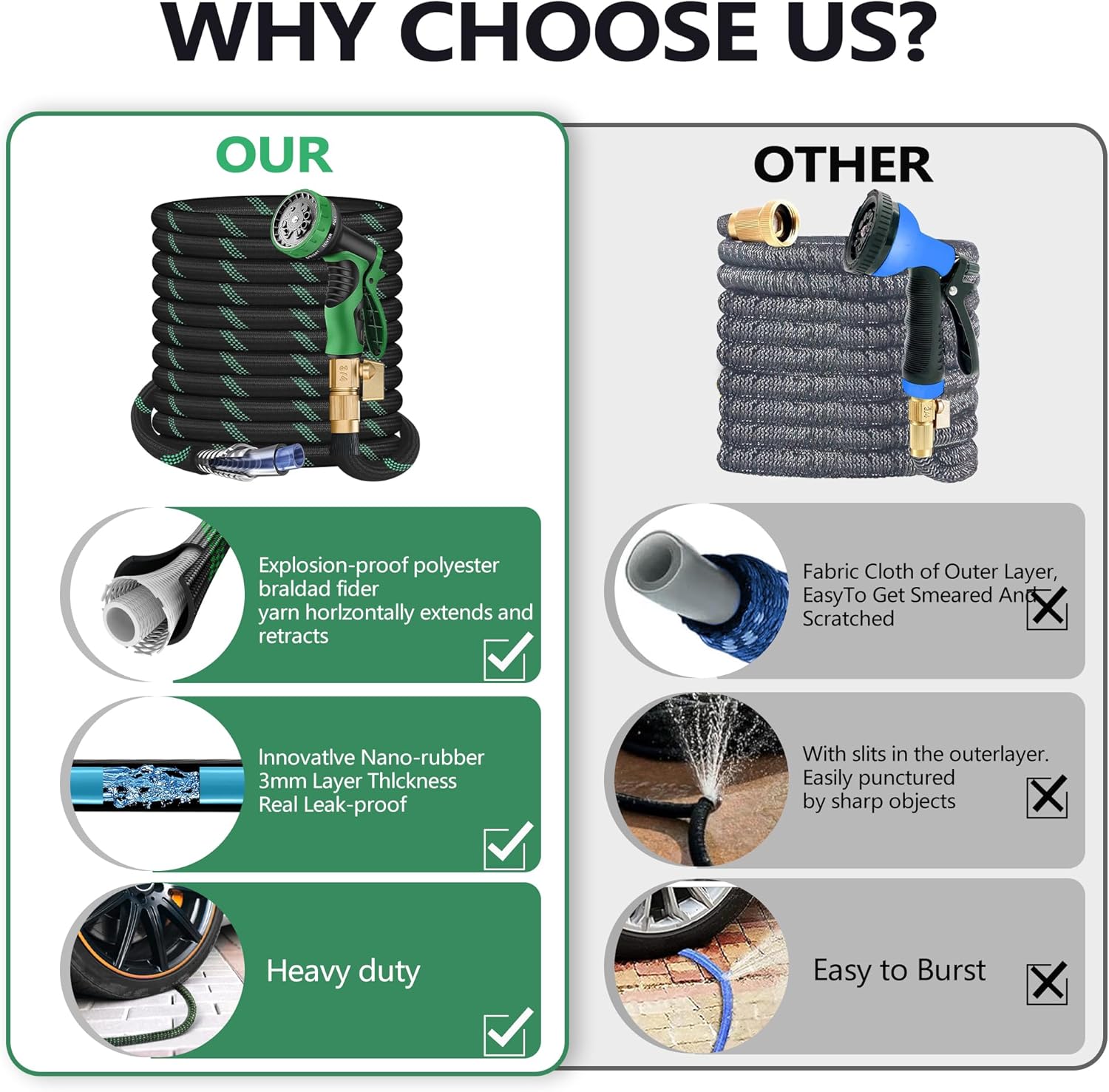 - 2025 UPGRADED GARDEN HOSE: This 100 ft Garden Hose is made from the highest quality materials, extremely functional, lightweight and flexible, durable. The hose will never kink, twist, leak, burst or get tangled up while in use