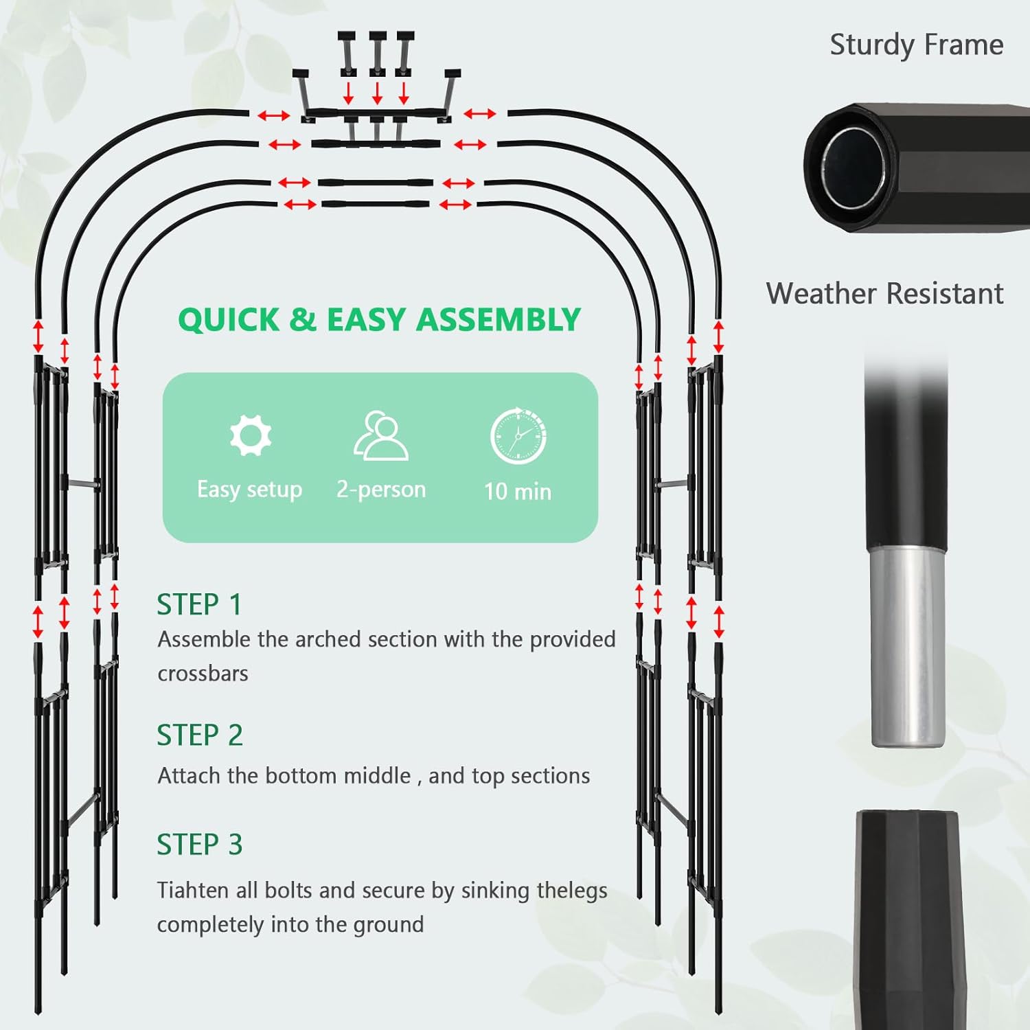 DoCred Large Tall Garden Arch Trellis for Climbing Plants Outdoor, 87in Tall Metal Garden Arbor Wedding Arches for Lawn, Party, Backyard Decoration