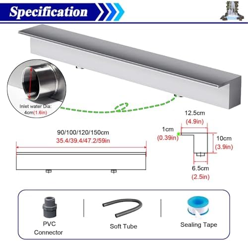 • Durable Stainless Steel Construction: Our waterfall spillway kit is crafted from heavy-duty stainless steel, ensuring exceptional durability and resistance to impact and pressure. The powder-coated finish is water-resistant and designed to prevent rust stains, making it ideal for both indoor and outdoor environments.