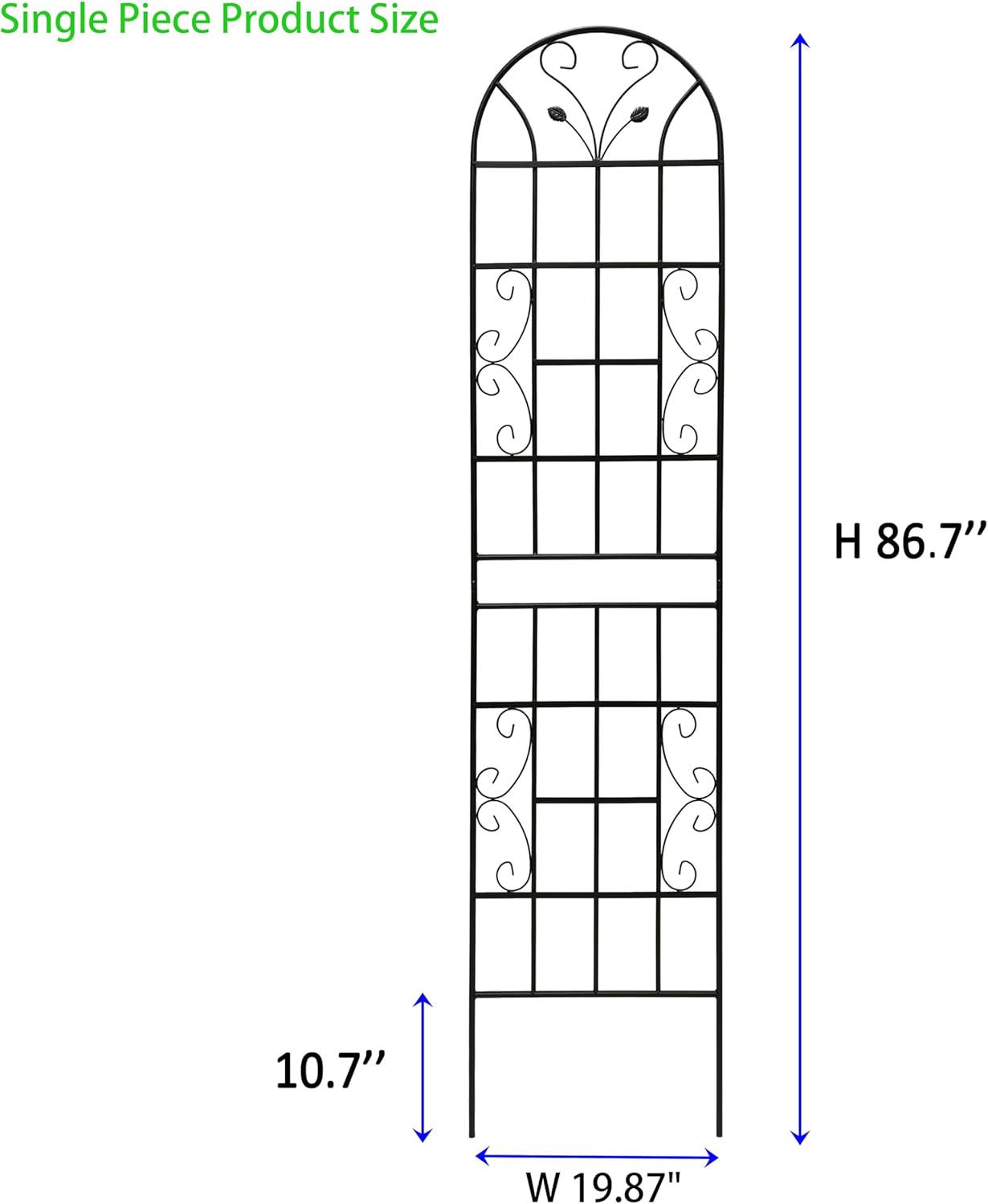 - Provide Strong Support: Each trellis stands 86.7" high and 19.7" wide, offering ample support for climbing plants such as roses, ivy, clematis, and more. The vertical structure helps enhance garden space while creating an attractive focal point.