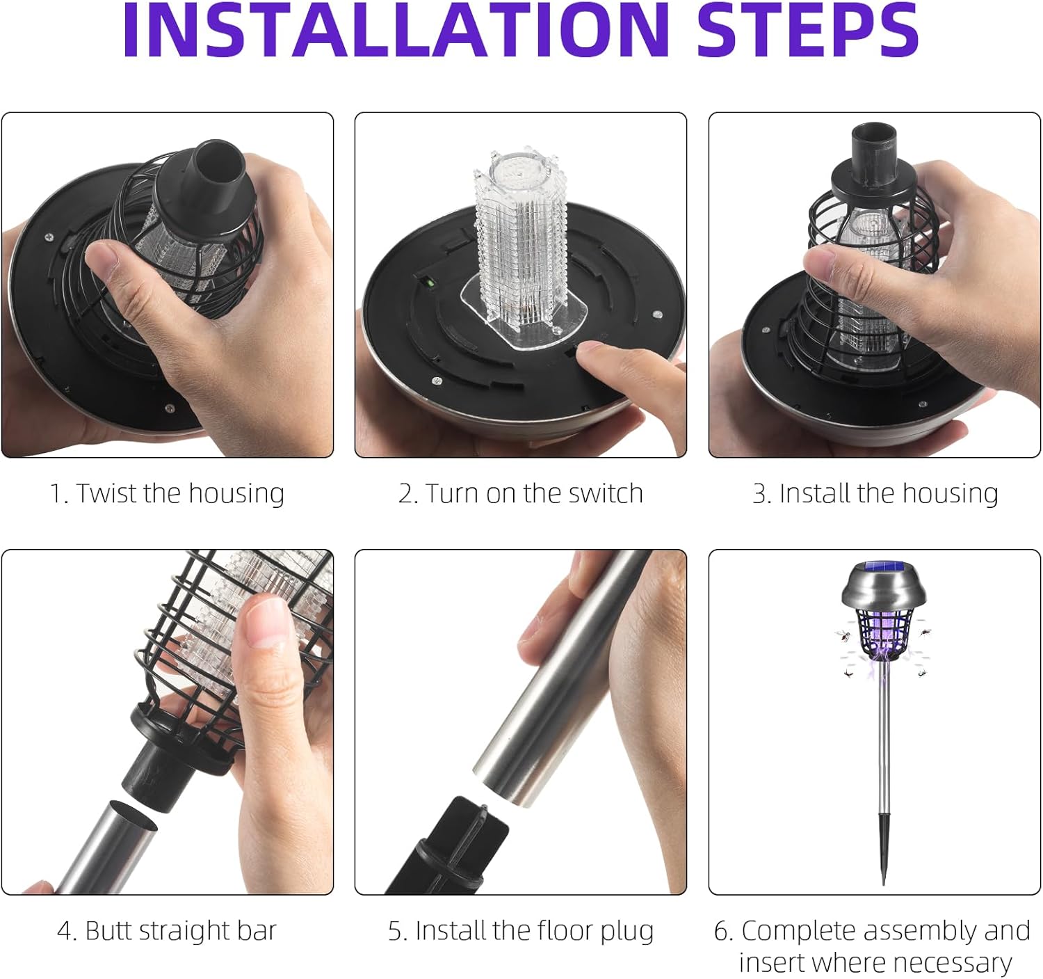 - Stainless Steel & Waterproof: This solar bug zapper outdoor is made of stainless steel, sturdy and stable, with excellent quality. Equipped with IP65 waterproof grade, the surface is beautiful and has good corrosion resistance, extending its service life