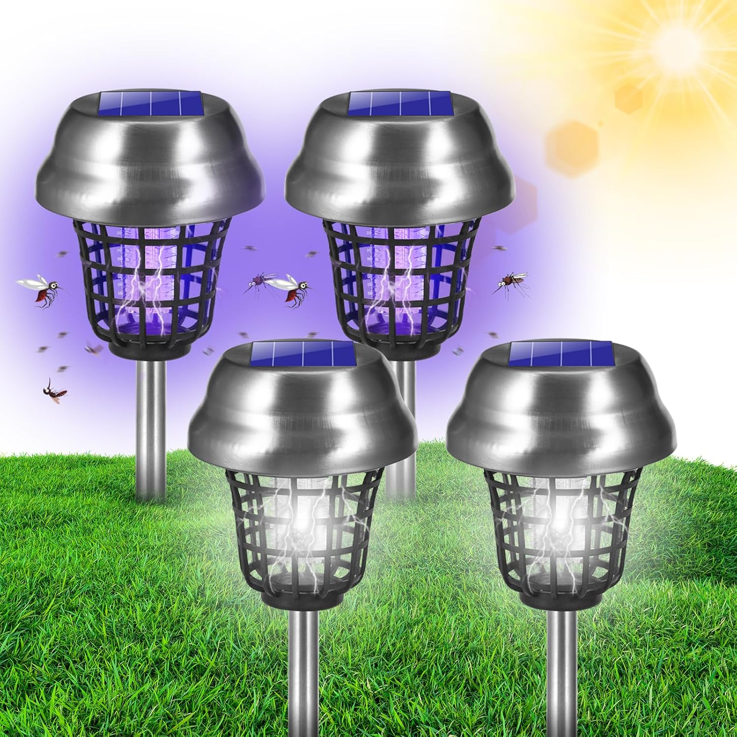 2025 Solar Bug Zapper Outdoor, Mosquito Killer Gnat Zapper, Waterproof Fly Traps for Bug Fly Gnat Small Flying Insect, Mosquito Repellent for Patio Yard Garden Farm(4Pack)