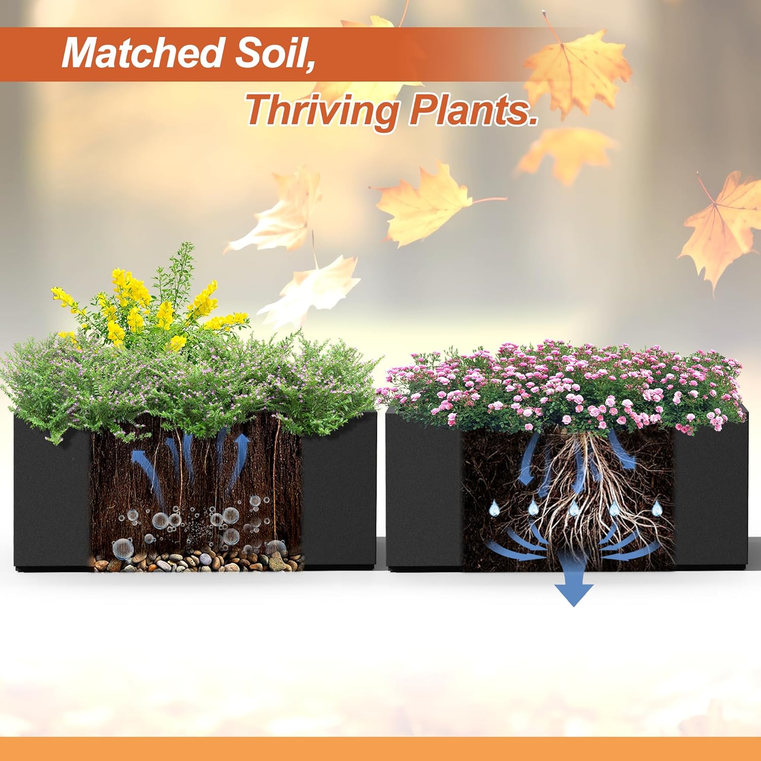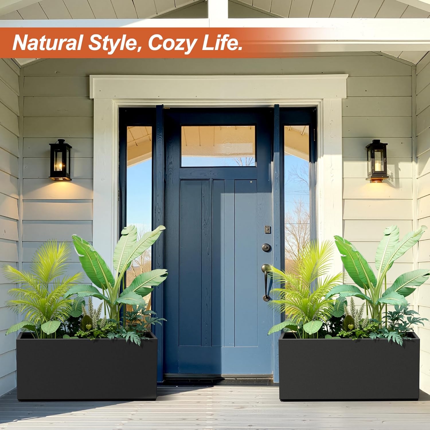 • Durable Thickened Construction: Crafted from extra-thick material with a weatherproof coating, this rectangle planter box outdoor endures sun, rain, and snow. Its reinforced structure makes it an ideal choice among tall planter boxes outdoor for long-term use in any climate. A reliable black planter that resists cracking, fading, and corrosion.