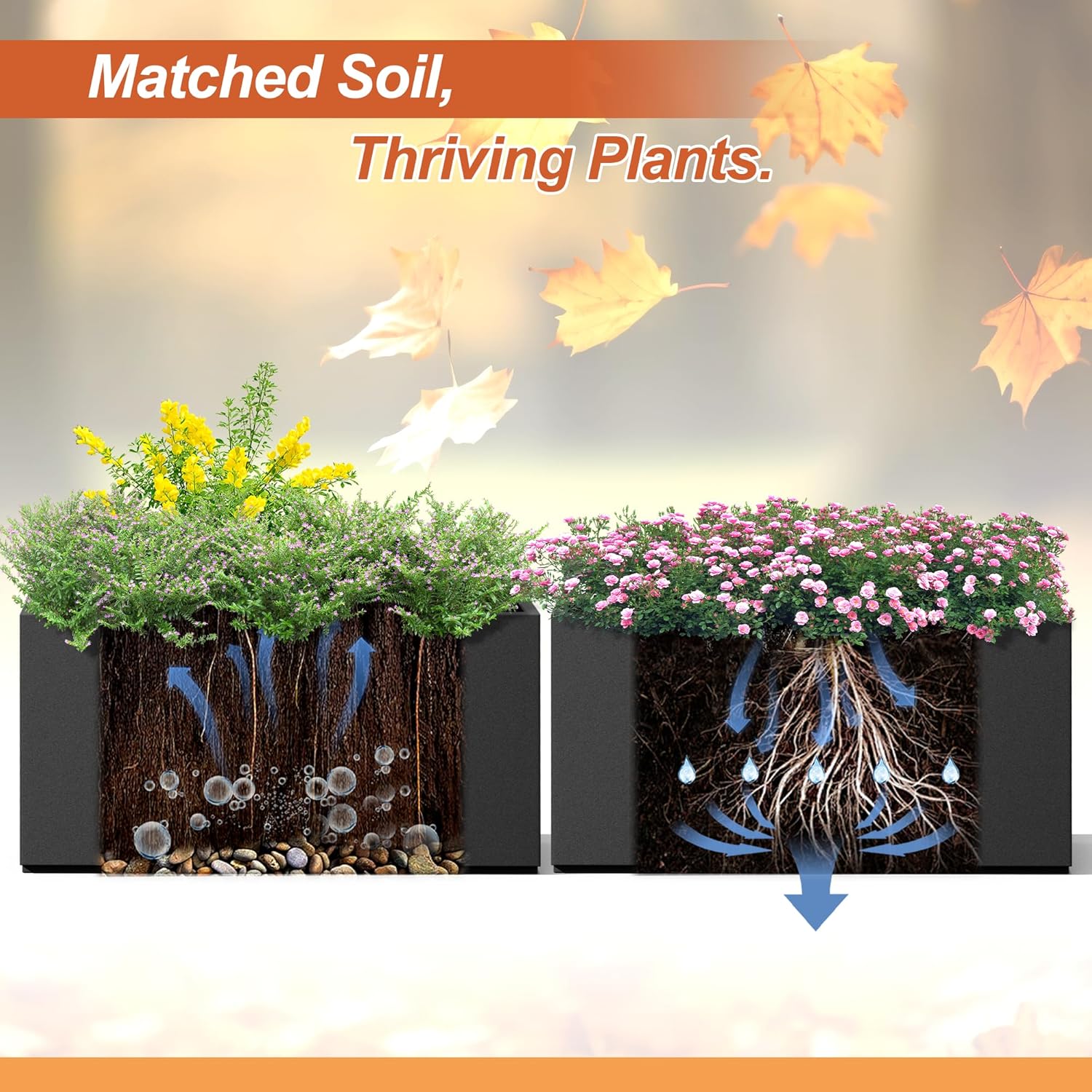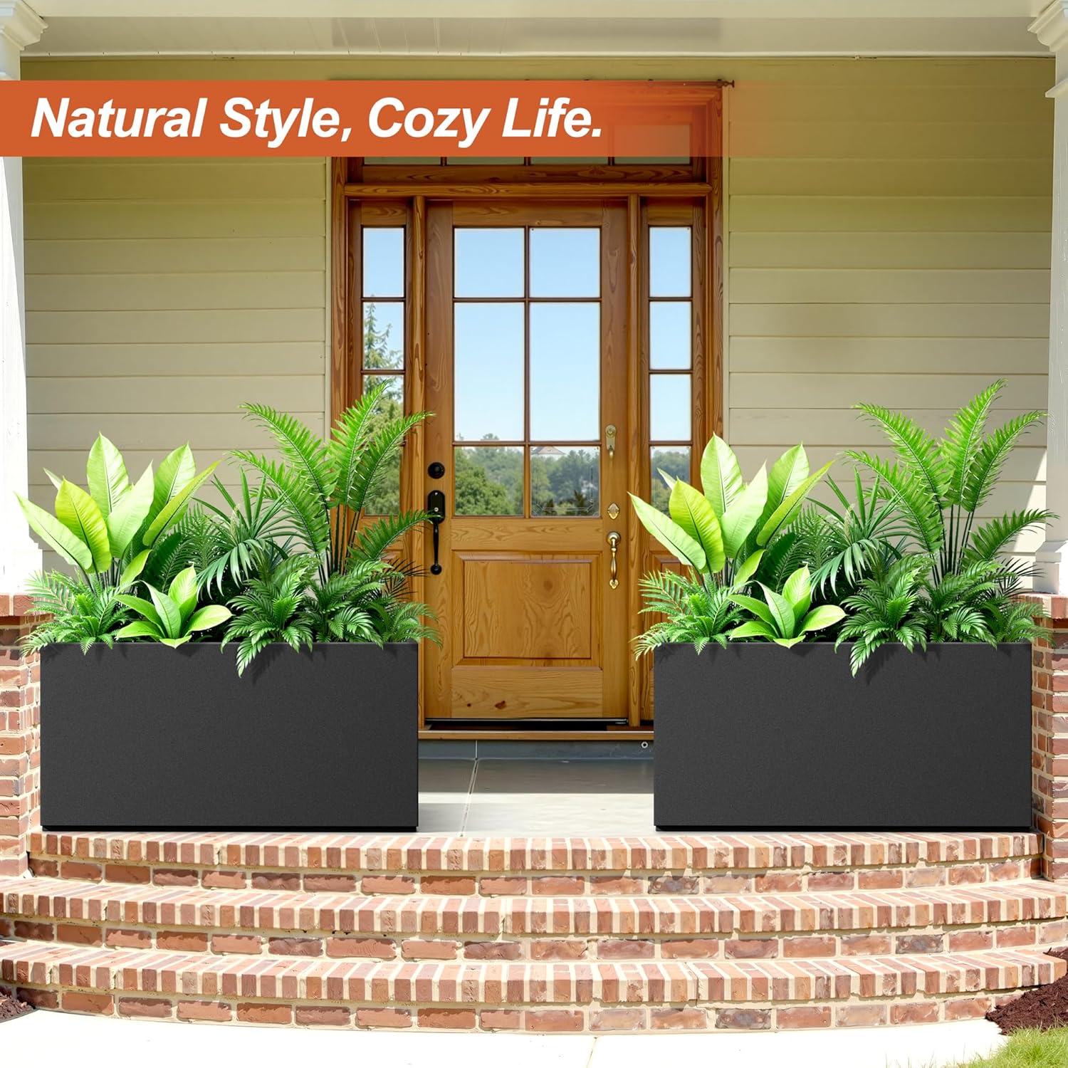 • Durable Thickened Construction: Crafted from extra-thick material with a weatherproof coating, this rectangle planter box outdoor endures sun, rain, and snow. Its reinforced structure makes it an ideal choice among tall planter boxes outdoor for long-term use in any climate. A reliable black planter that resists cracking, fading, and corrosion.