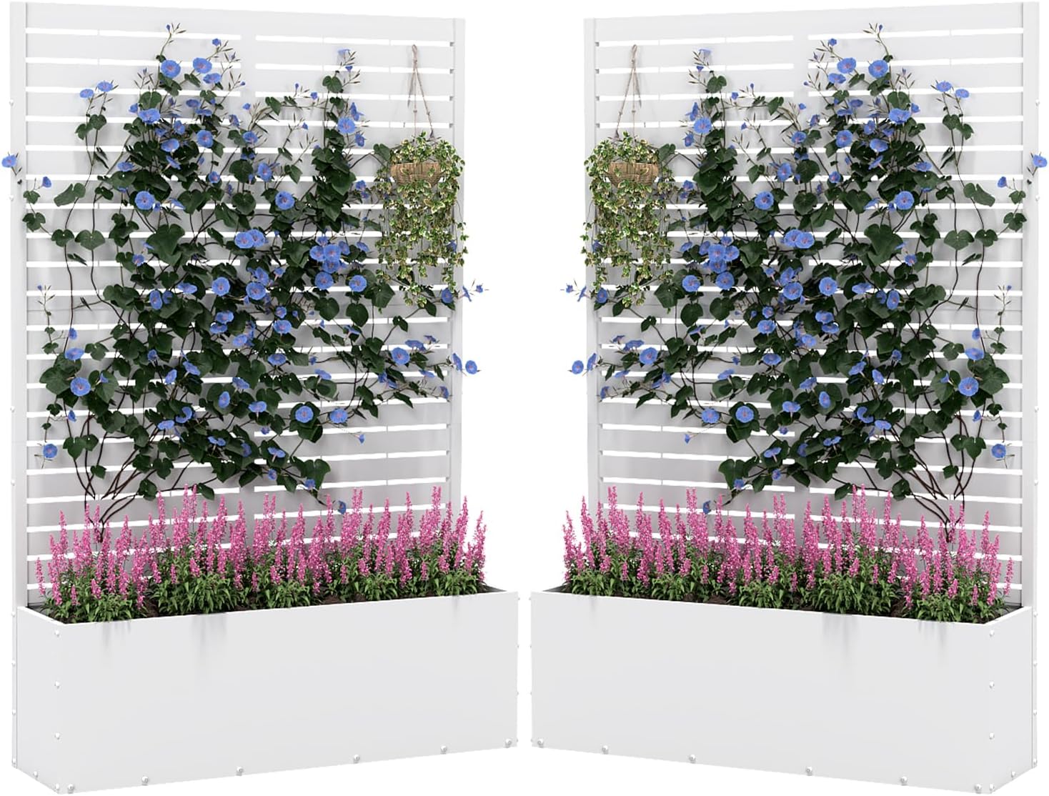 2PCS Metal Planter Box with Trellis,70.9"x47.2"x15.7" Raised Garden Bed with Drainage Holes, Privacy Planters for Outdoor Garden Bed for Climbing Plants,Vegetables,and Vines, White-louvered