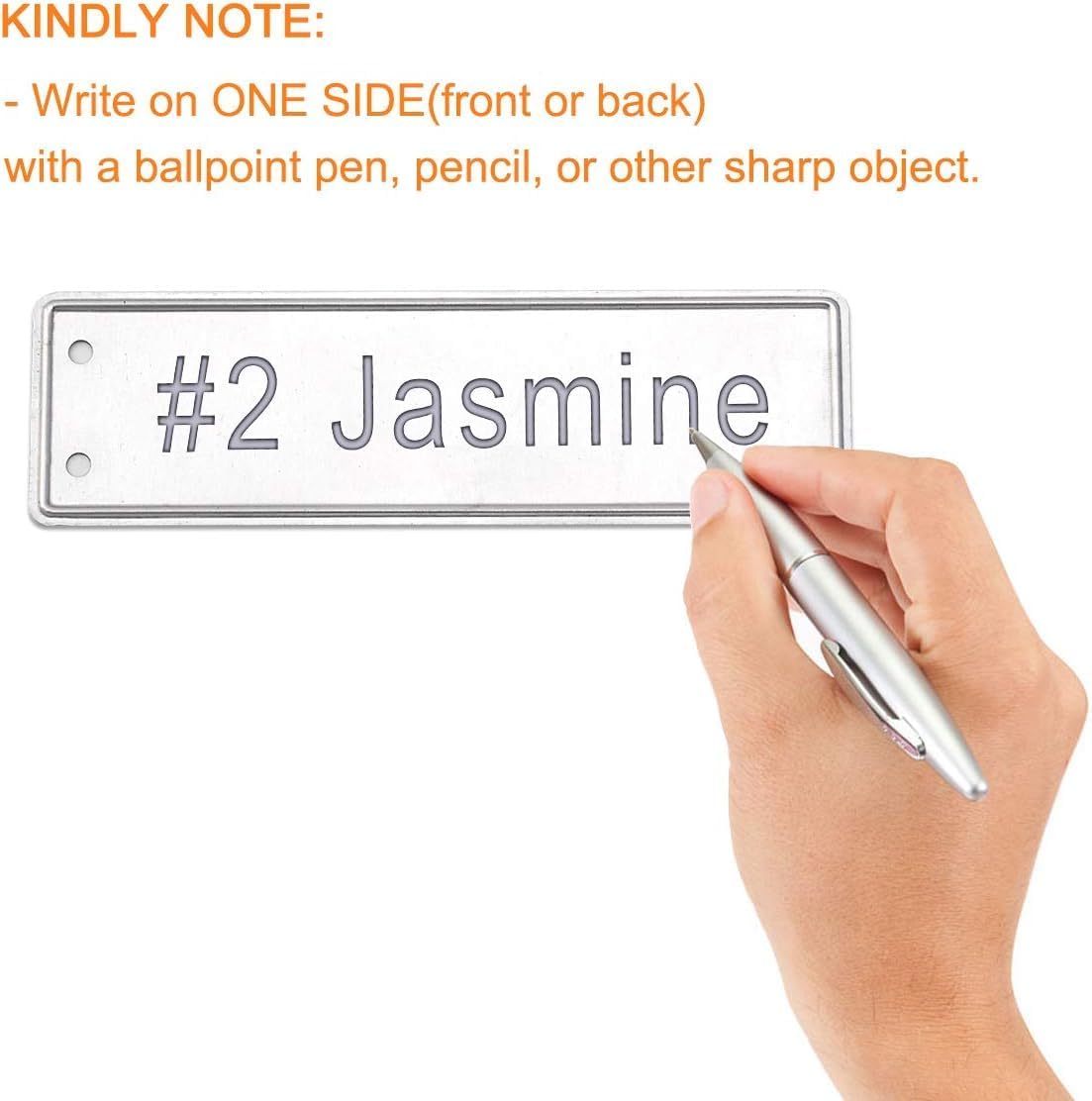 - Write as you like: the aluminum tree tags are about 1 x 3.25 inches, providing enough space for you to write with a Marker pen, pencil, or other pointed object, unlike paper or plastic marking sign, your message is permanent and remains legible for years