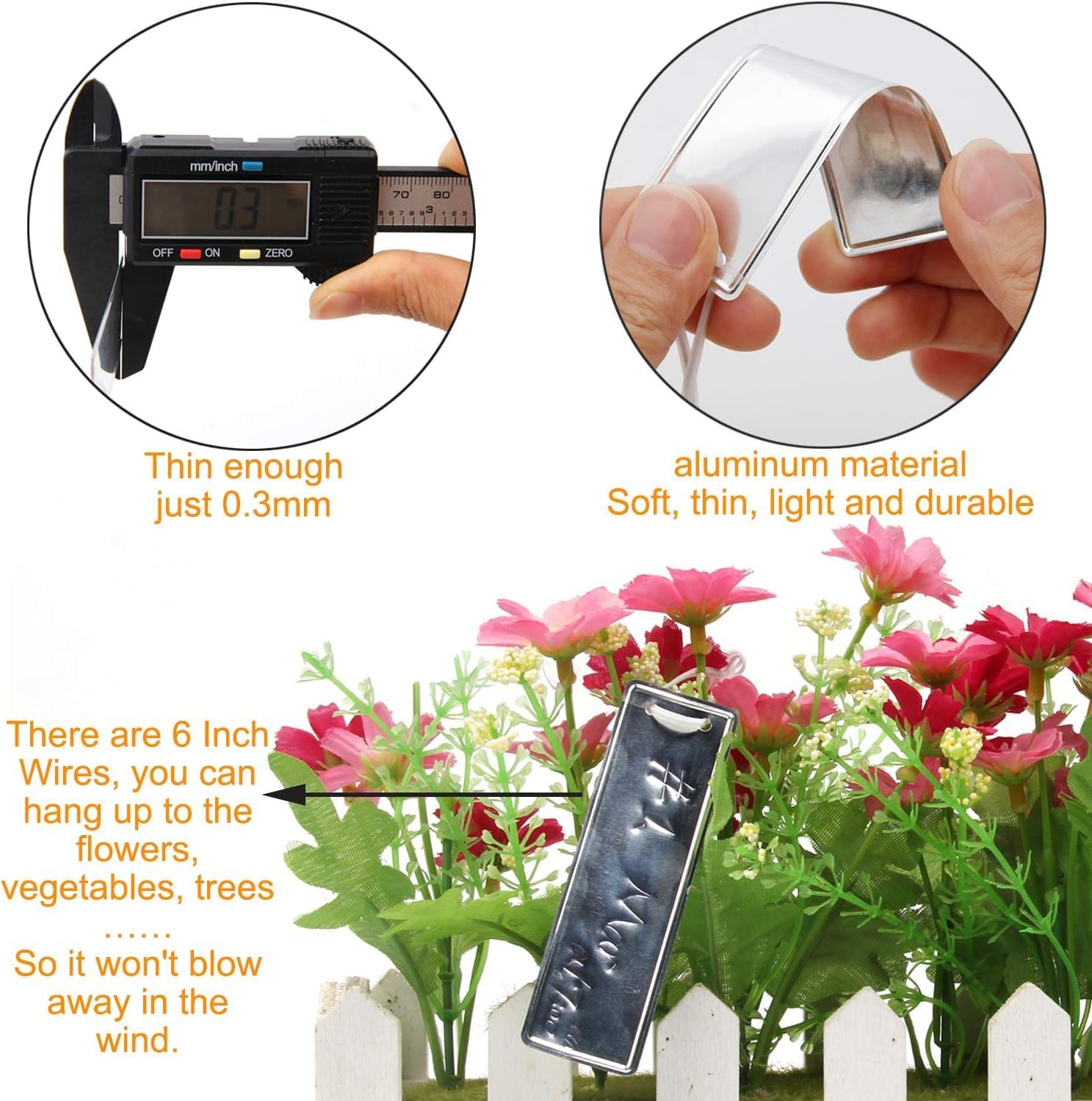 - With metal wires: the waterproof outdoor plant markers need to be hung with metal wires, which is more sturdy than twine, our metal wires have been trimmed into suitable size, helping save your time