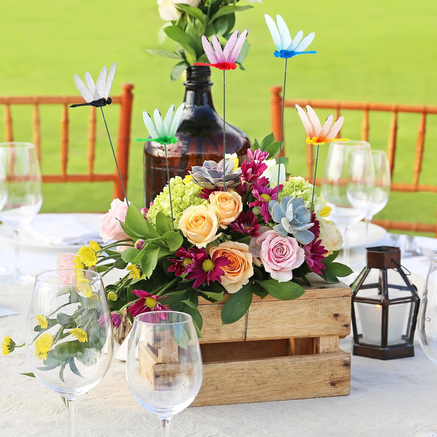 - Artistic Floral Works: insert our dragonfly garden stakes into bouquets, flower baskets, or potted plants to transform ordinary floral arrangements; The dragon fly garden stakes elevate the ornamental value, creating intricate designs suitable for weddings, parties, and other special occasions