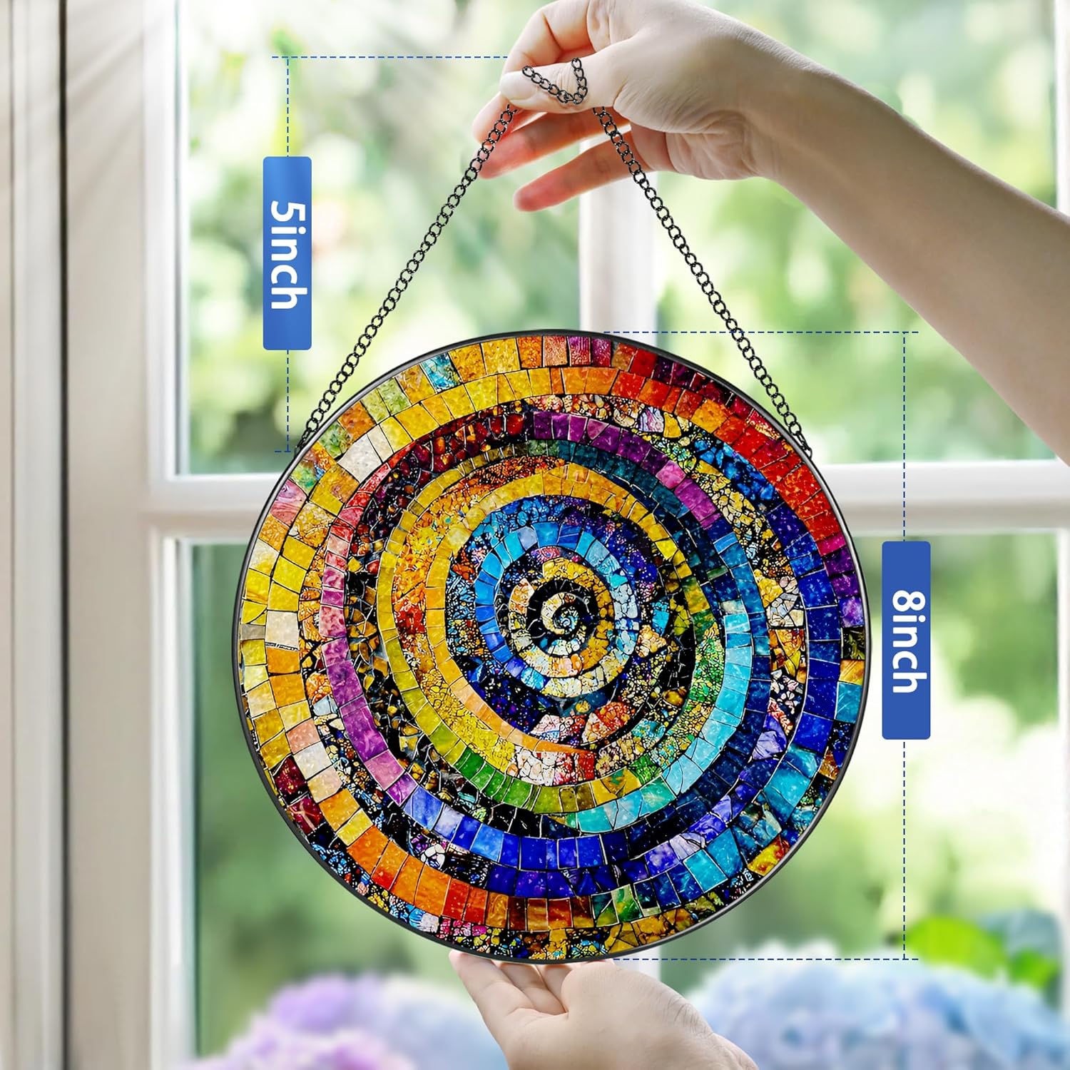 Stained Glass Window Hanging, Pauyadu 8 Inch Rainbow Spiral Stained Glass Suncatcher, Home Decor for Windows, Art Lovers Gifts, Christmas, Birthday Gift Ideas, Gifts for Best Friend, Lovers