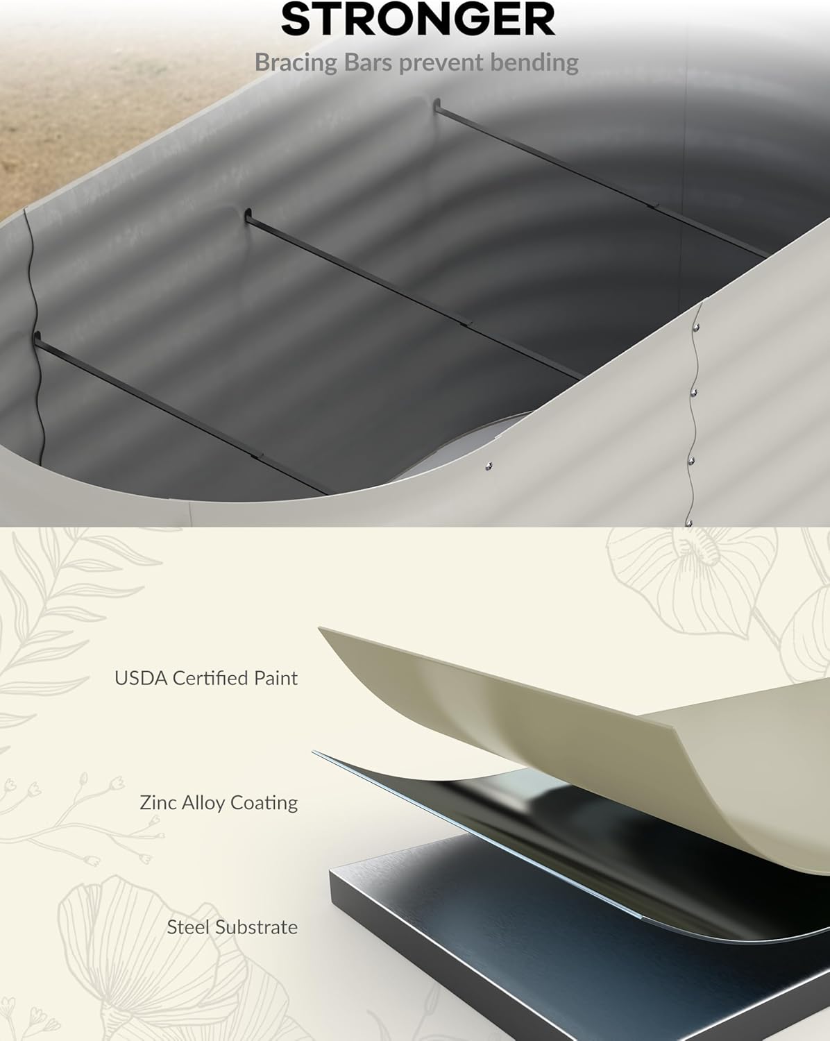 - 【2 Pack Premium Galvanized Raised Garden Bed】Our heavy-duty raised garden bed features 18/24 in elevated sides - taller than standard garden boxes for better root growth. Constructed with weather-resistant galvanized steel and internal supports, this planter raised bed offers superior durability for outdoor use.