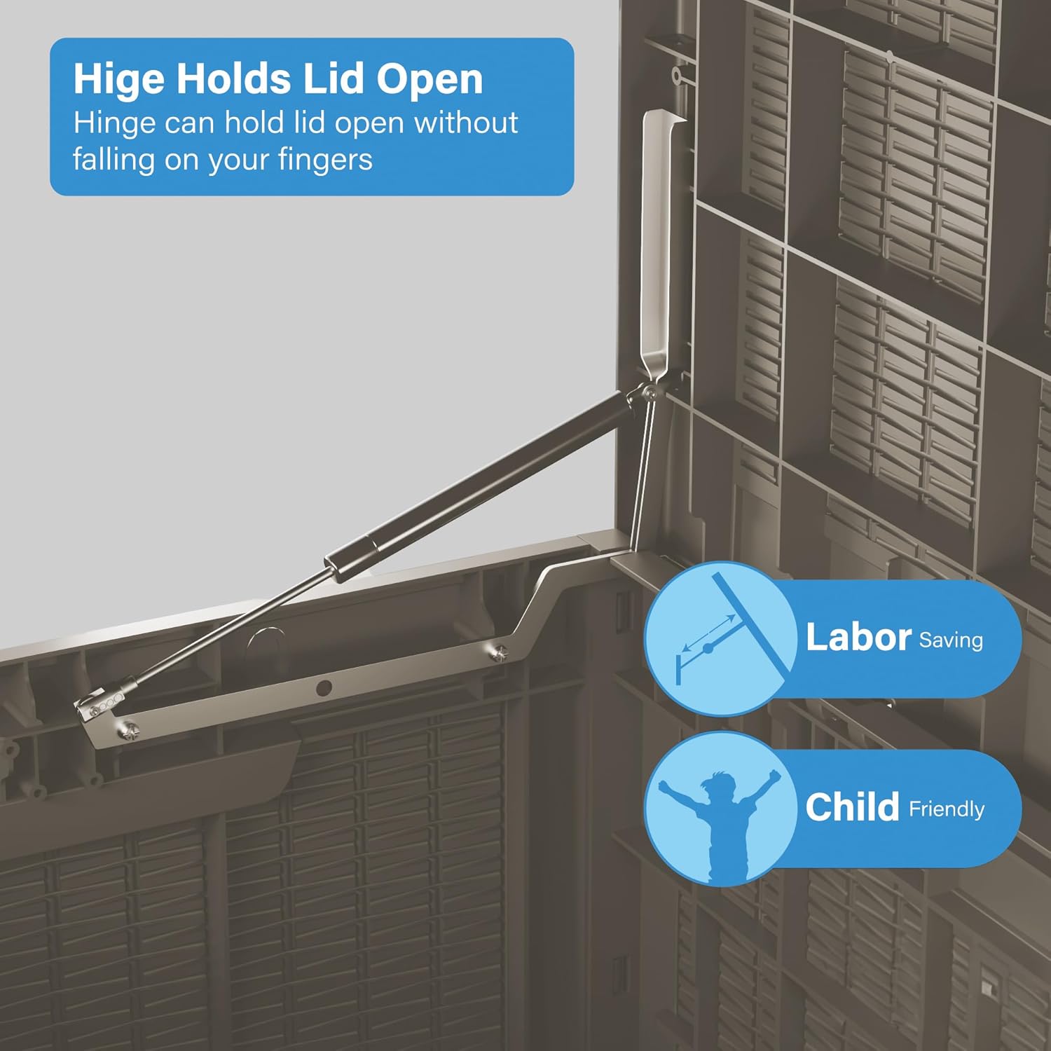 - 【New upgraded structural design】 Made with upgrade weather-resistant and waterproof resin, this 100-gallon deck box is designed to withstand the elements and prevent denting, rust, and peeling,it also can UV-resistant, can be used indoors and outdoors.