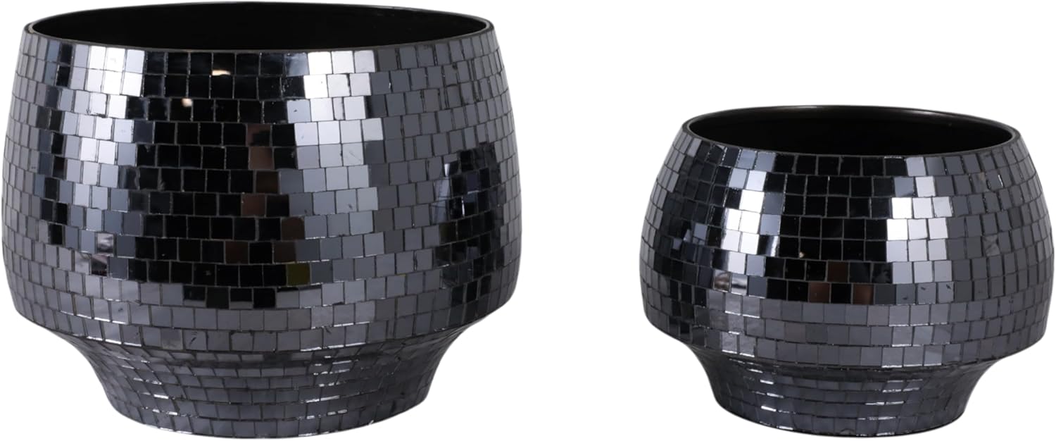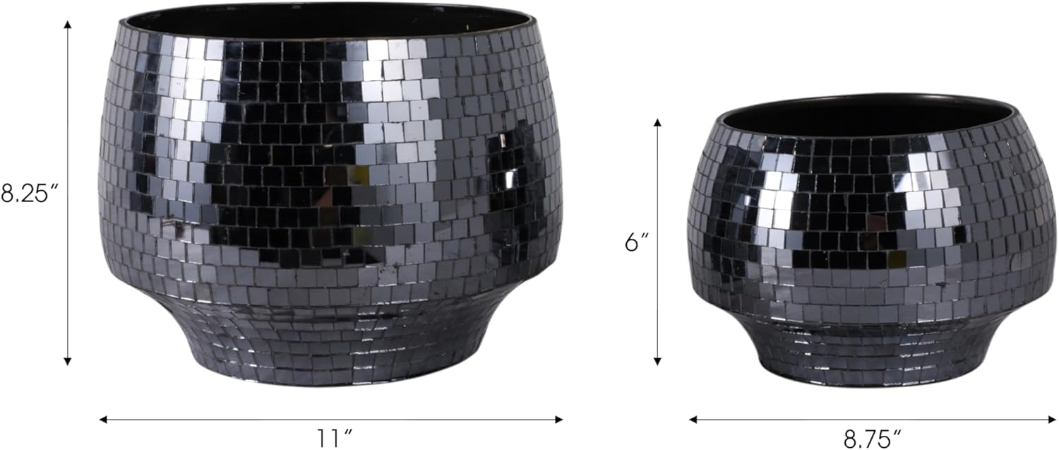 Flower Pots and Planters for Home Decor – Mosaic Indoor and Outdoor Plant Pots for Garden, Patio, or Room – Modern Pots for Indoor Plant Stand for Herbs, Succulents, or Ferns Set of 2 – 8", 6" Black