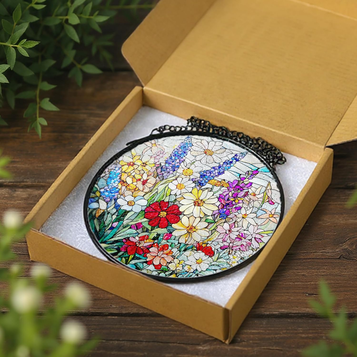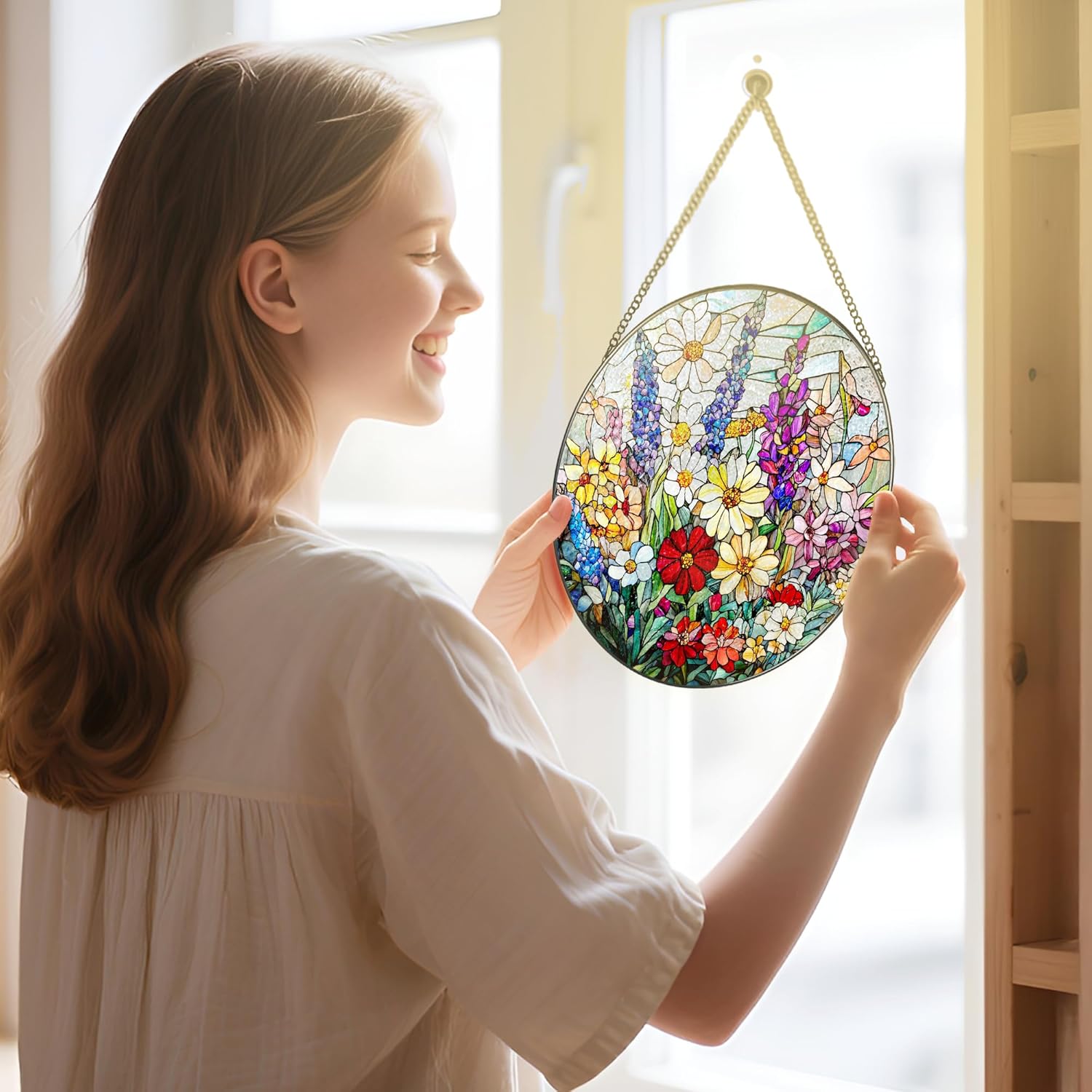 Stained Glass Window Hanging, 8 Inch Wildflower Stained Glass Suncatcher, Suncatchers for Windows Hanging, Wildflower Window Decor, Florist Gift, Flower Lover Gifts, Gifts for Mom, Grandma