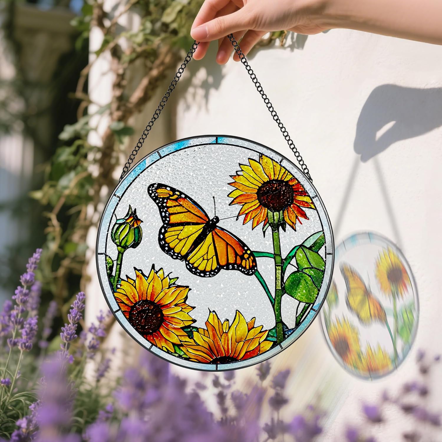 Stained Glass Window Hanging, 8 Inch Butterfly Sun Catchers Indoor Window, Suncatchers for Windows Hanging, Home Decoration and Christmas, Festival, Mother's Day, Birthday, Gifts for Women, Mom