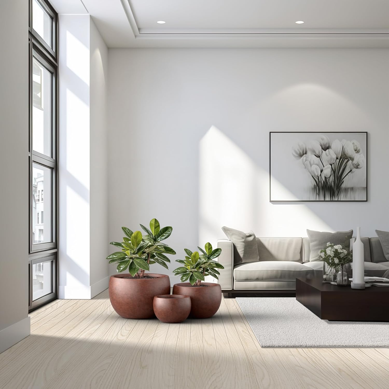 Kante 19.9",15.7",11.8" Dia Round Concrete Planter Set of 3, Outdoor/Indoor Large Bowl Plant Pots with Drainage Hole and Rubber Plug for Garden Patio Balcony Home, Rusty