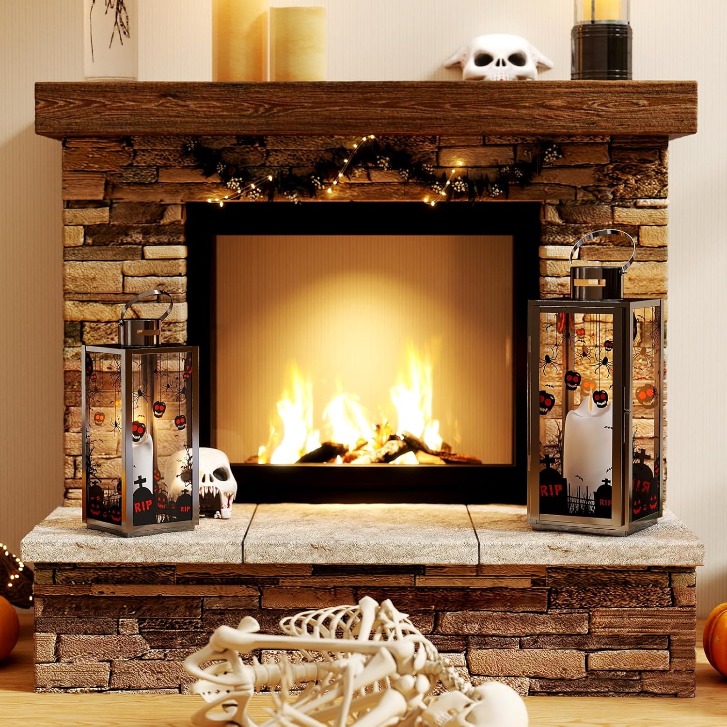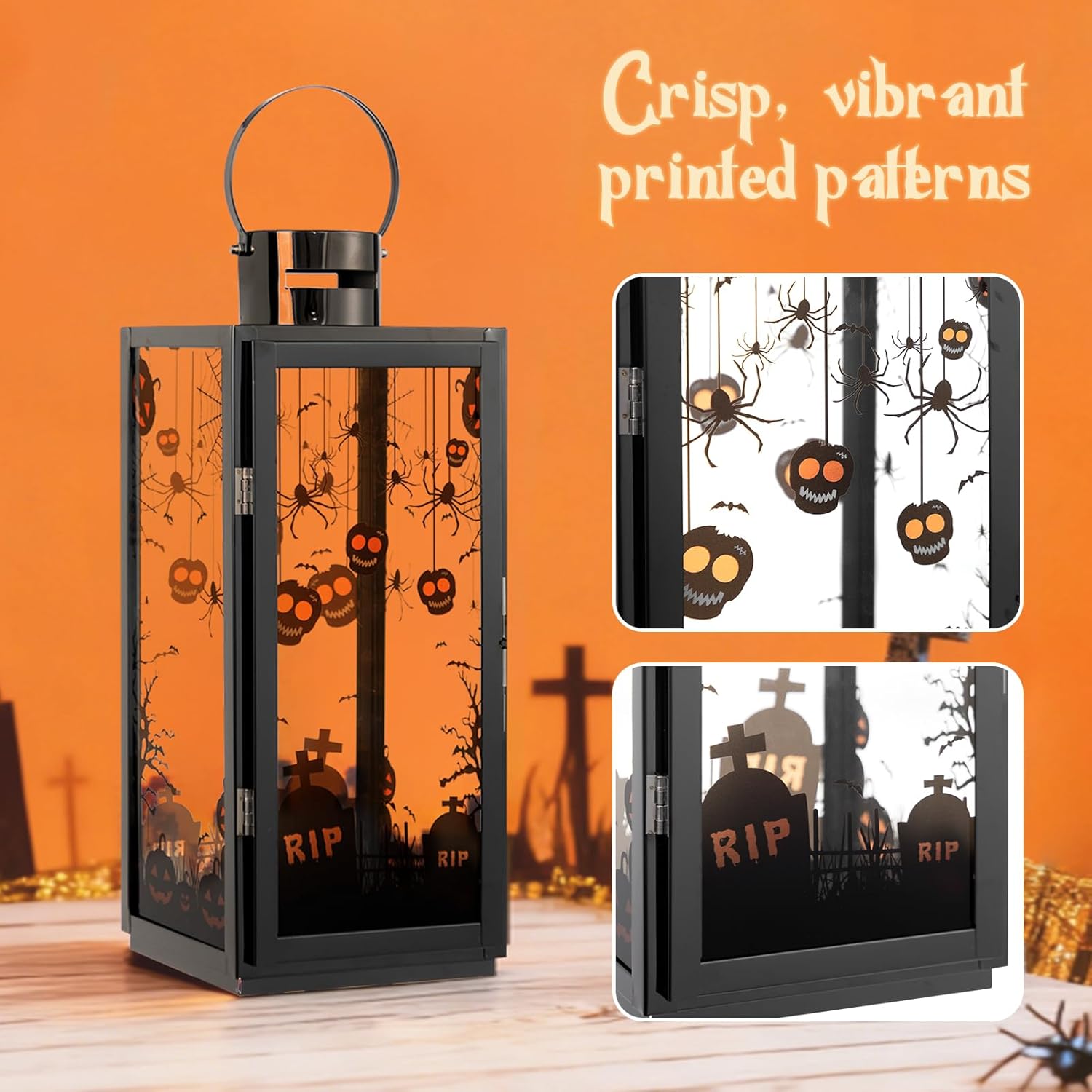 MATICO Stainless Decorative Candle Lantern Set of 3, Hanging Decor Hurricane Lantern Candle Holder for Festival Ceremony Home Decor, Both Indoor & Outdoor Use,Halloween