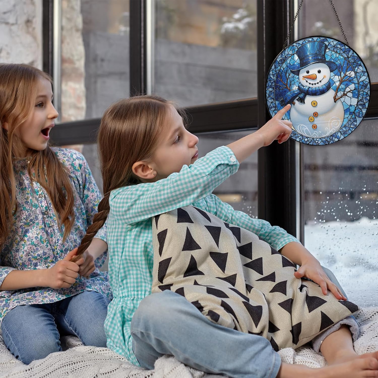 Stained Glass Window Hanging - Winter Snowman Suncatcher for Windows Hanging Whimsical Light Catcher Home Decor Terrace Garden Sun Catcher Gifts for Women Wife Mom Sister Nana 7.8 in