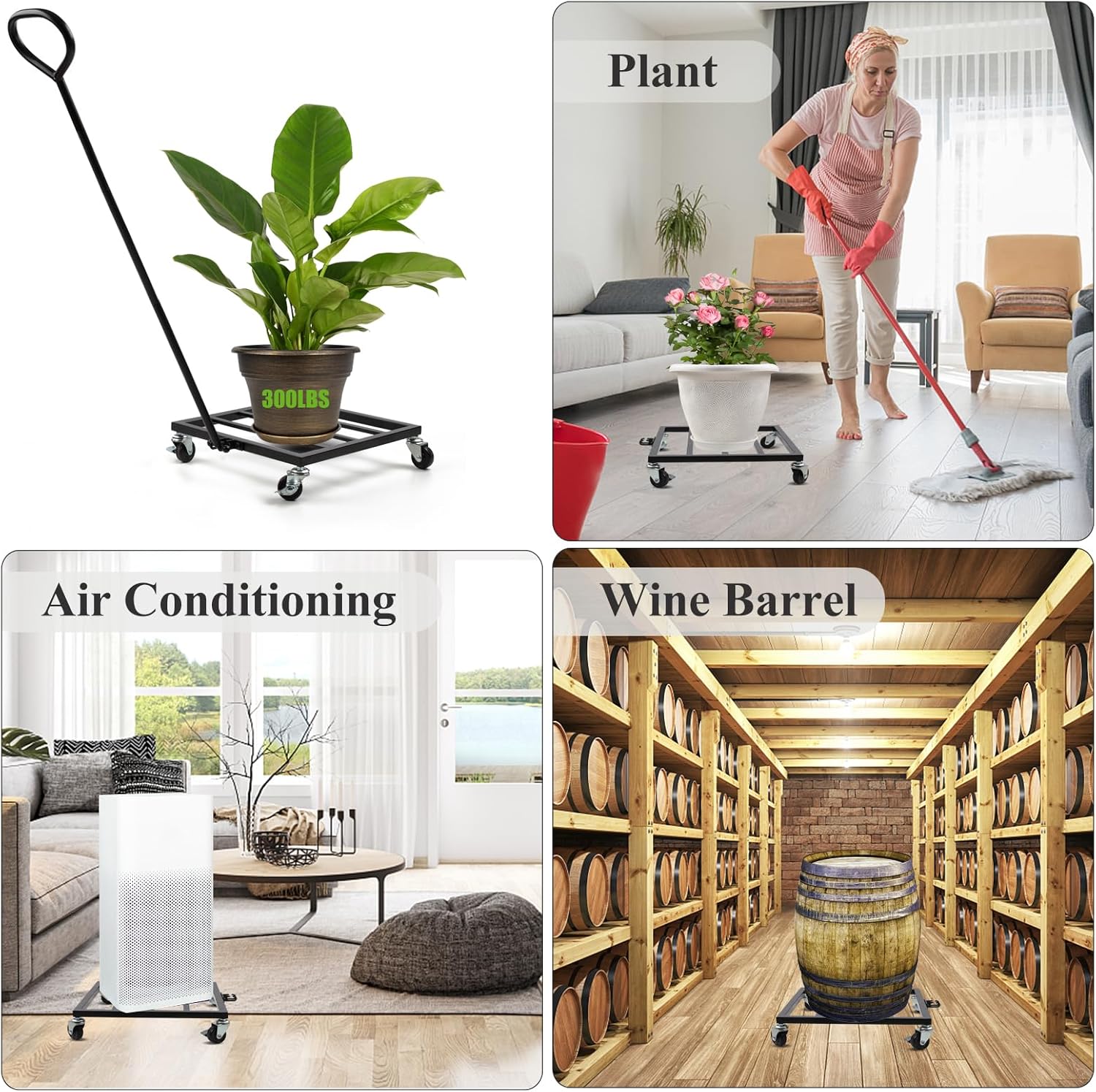 - - 🧹 Streamlined Home Maintenance: Simplify your cleaning and moving tasks with this rolling caddy, capable of handling heavy items like plants, whiskey barrels, and large boxes. Say goodbye to the hassle of lifting and rearranging cumbersome objects, and enjoy the convenience this plant dolly brings to your daily chores.