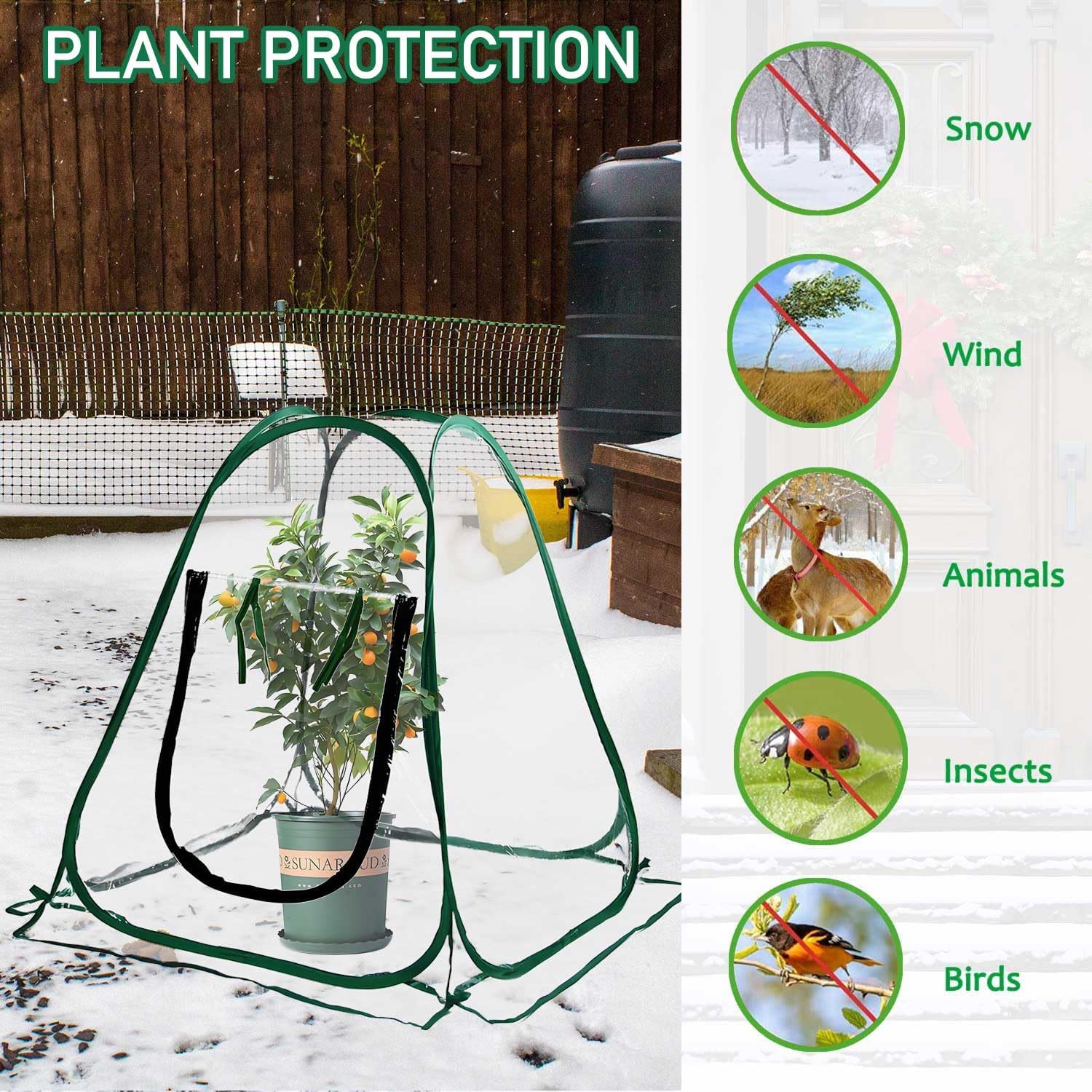 - 【Convenient Design】: The pop-up design allows for quick and easy setup, ideal for backyard use and small outdoor greenhouse needs. The zippered roll-up door and tie design provides easy access for tending to your plants(Allowing air, moisture and sunlight to filter through for optimal growing conditions). Additionally, the design allows convenient observation of plant growth changes without affecting pollen transmission.