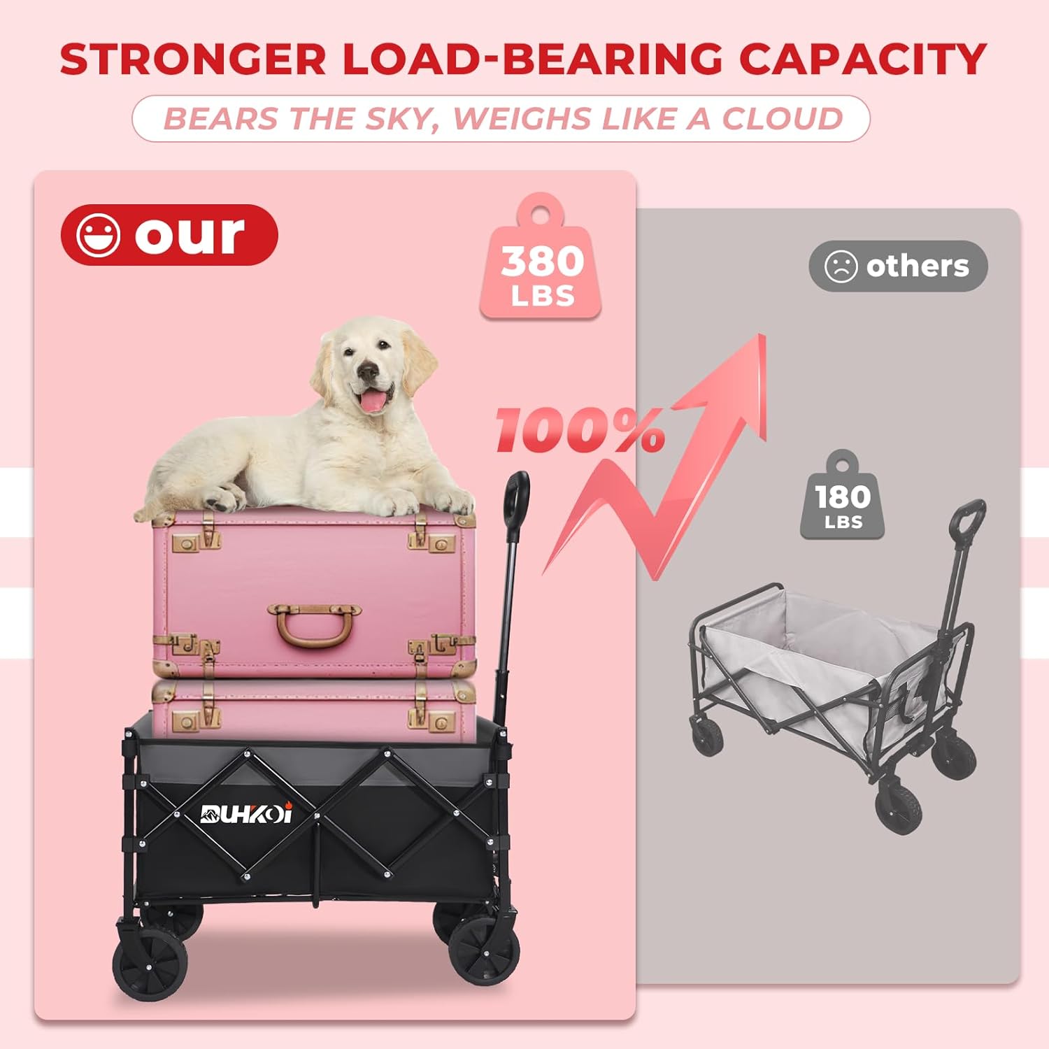 - 380 Lbs Weight Limit For Heavy Loads:Built with reinforced thickened steel tubing, this heavy duty wagon holds up to 380 lb without bending. Load it up for camping, tailgating, landscaping, or weekly shopping—no need for extra trips