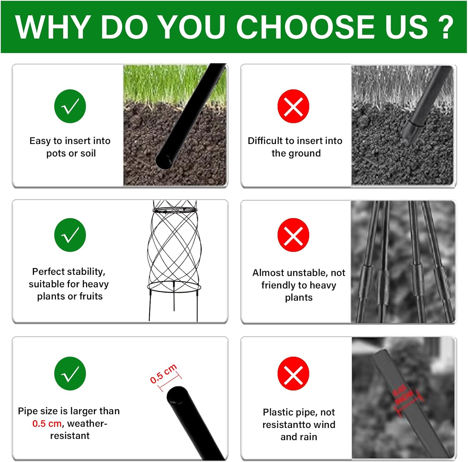 - Exceptional Weather Durability: Constructed from top-grade iron, our garden obelisk trellis is built to withstand all weather conditions, ensuring long-lasting performance in both indoor and outdoor settings.