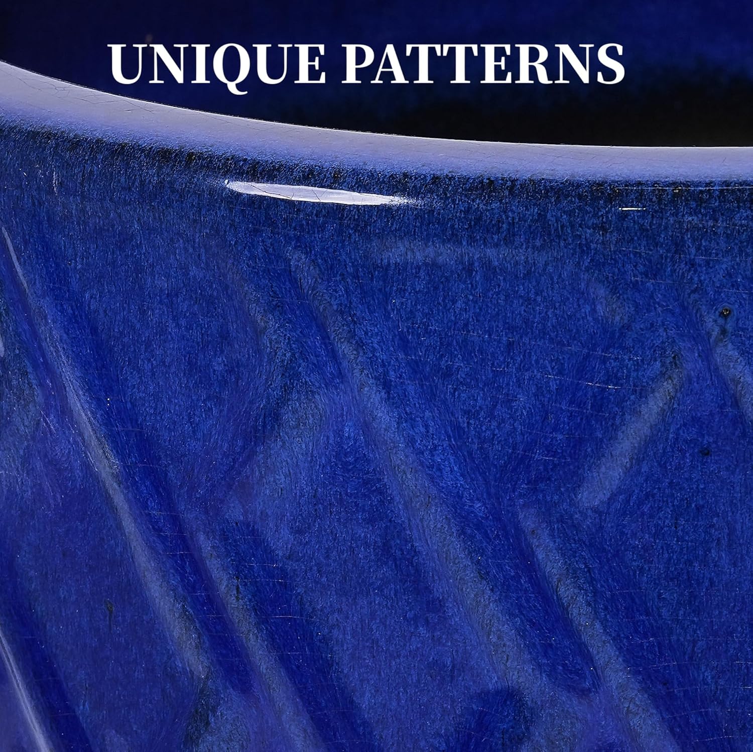 Large Ceramic Planter Pot 21 Inch, Tall Plante Pots Decorative Flower Pot with Diamond Textured Pattern and Drainage for Indoor Outdoor Plants (Dark Blue)