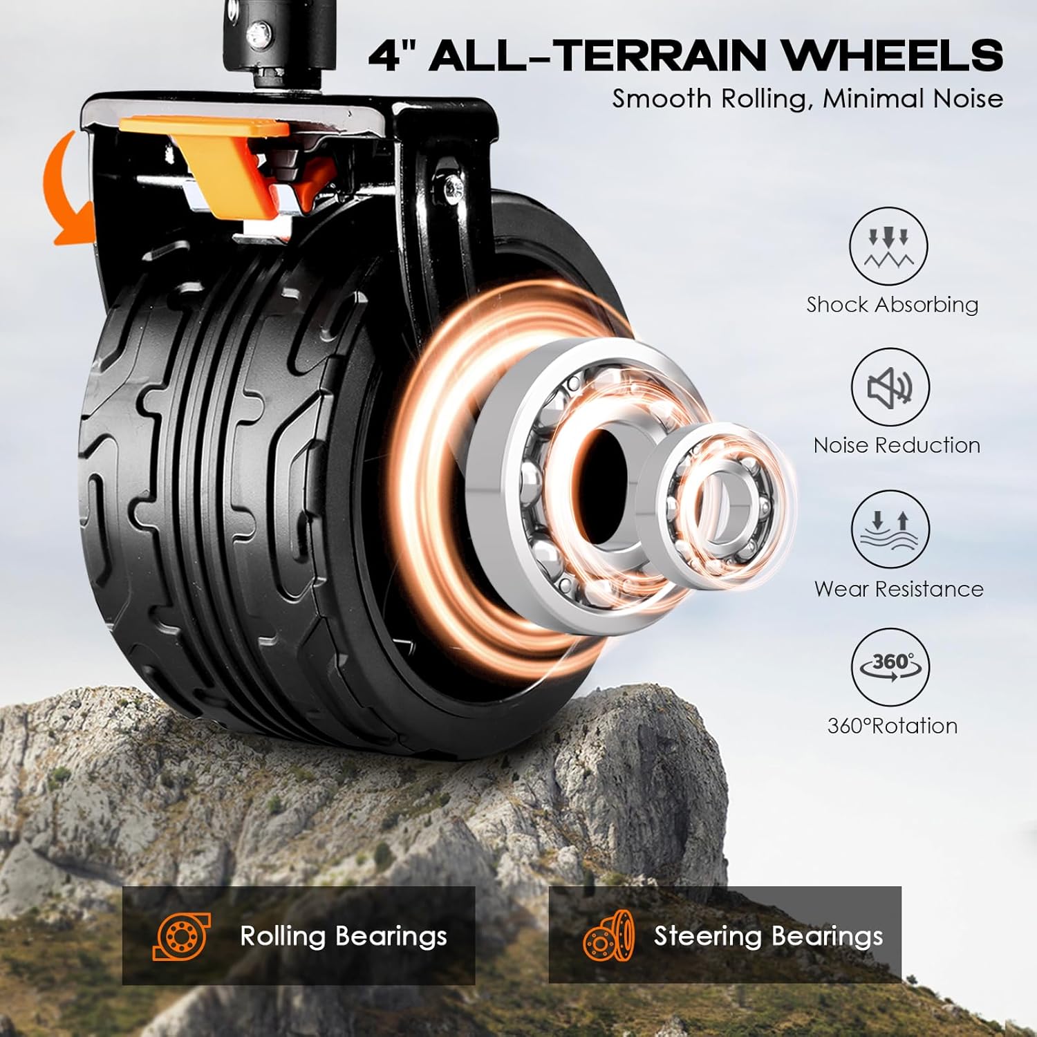 - SMOOTH NAVIGATION: Equipped with robust 4" wide all-terrain wheels, crafted from durable, high-hardness PVC with anti-slip treads and precise ball bearings, this wagon ensures seamless movement even under substantial loads. Safety is paramount, with foot brakes on the front wheels providing stability on inclines. The retractable handle, rotating a full 360 degrees, offers effortless steering control.