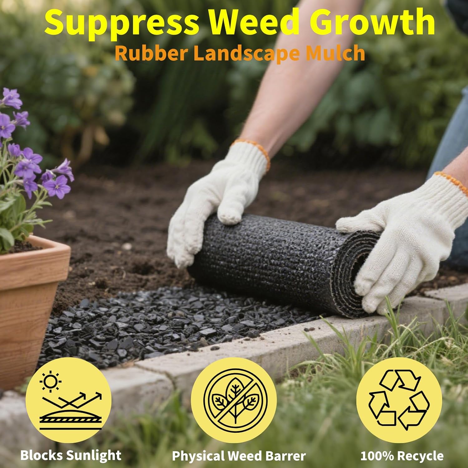 - Effortless Weed Control for Garden Beds This rubber mulch mat creates a dense, permeable barrier that effectively helps block weeds in flower beds and around trees. It's the ultimate low-maintenance mulch for landscaping projects, saving you time and effort.